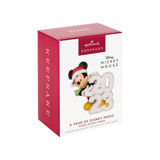 The “A Year of Disney Magic” series by Hallmark celebrates each calendar year with the timeless charm of Mickey Mouse and other beloved Disney icons, transforming a dated ornament into a keepsake of memories. Each annual release features Mickey—or occasionally other characters—posing with the year prominently displayed in festive form, such as a snow‑sculpted design or a cheerful numeric decoration. Whether you’re commemorating a milestone, vacation, or simple holiday tradition, this series bridges nostalgic Disney joy with the significance of the year. The effect on the tree is more than décor—it’s a snapshot of time, a token of celebration, and a nod to fans of magic, memory, and merriment wrapped into one ornament collection.