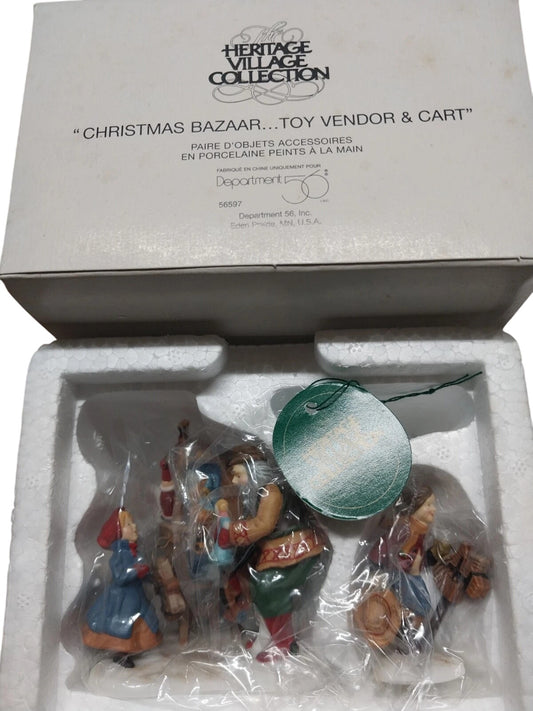 Vintage Christmas Bazaar... Toy Vendor & Cart (Set of 2 Handpainted Porcelain Accessories) (Department 56) 56597