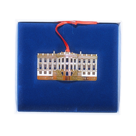 The “White House” motif appears in collectible ornaments associated with the White House Historical Association that commemorate the U.S. Executive...
