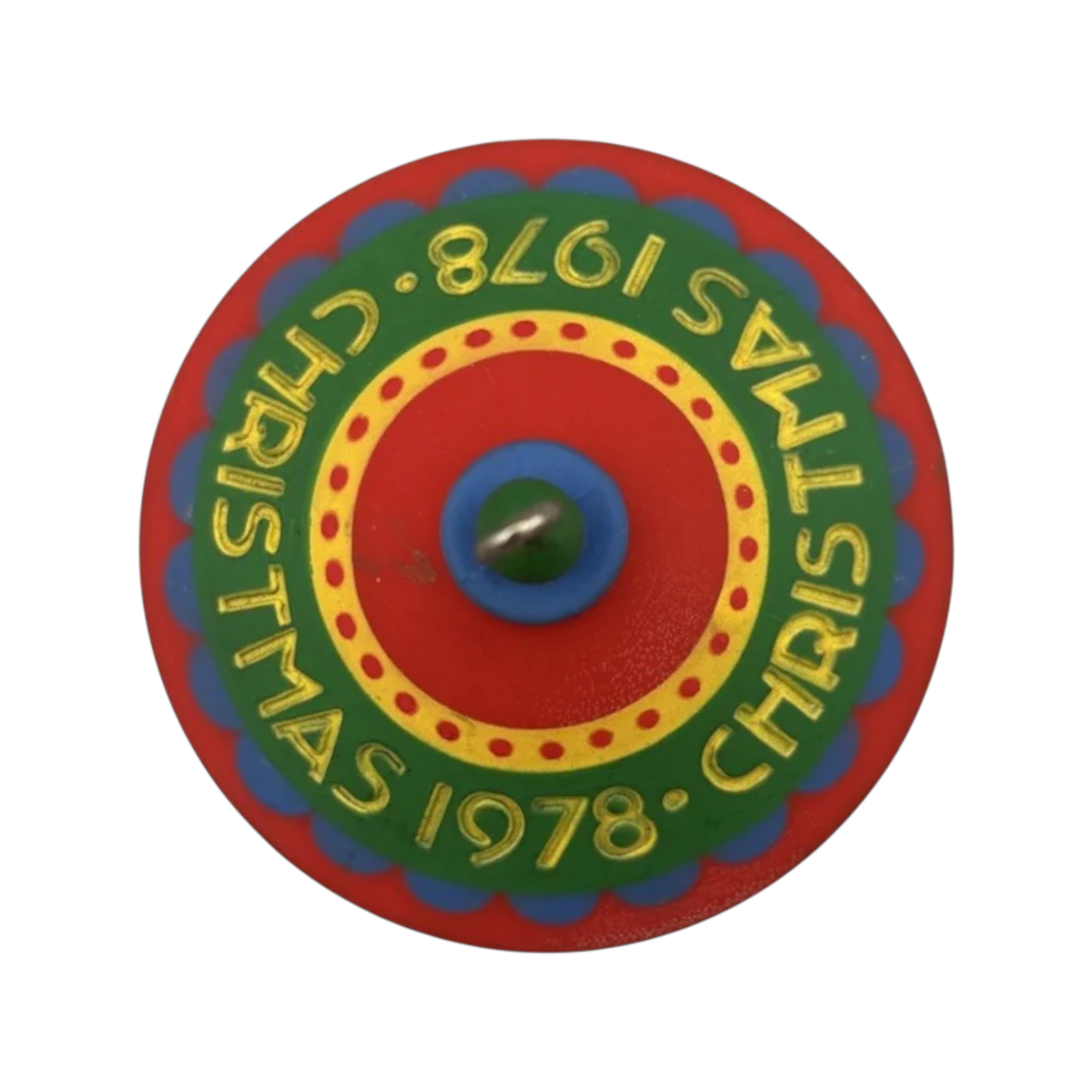 This vintage ornament from 1978 features a miniature carousel, complete with a rotating or “twirl-about” mechanism — a charming, kinetic piece intended to add movement to your Christmas tree. The design typically includes the carousel structure with detailed painted elements (horses, canopy), and a mechanism that allows it to spin when hung (or gently nudged). As part of the Tree Trimmer Collection, this ornament is small and lightweight, ideal for holiday trees of that era or vintage-themed décor. Because of its mechanical design, it does not require batteries or external cords — the motion is manual (wind or hang). When originally sold, it may have included a hanger or string suspension and possibly a simple display backing or box, though many surviving examples are now sold loose.