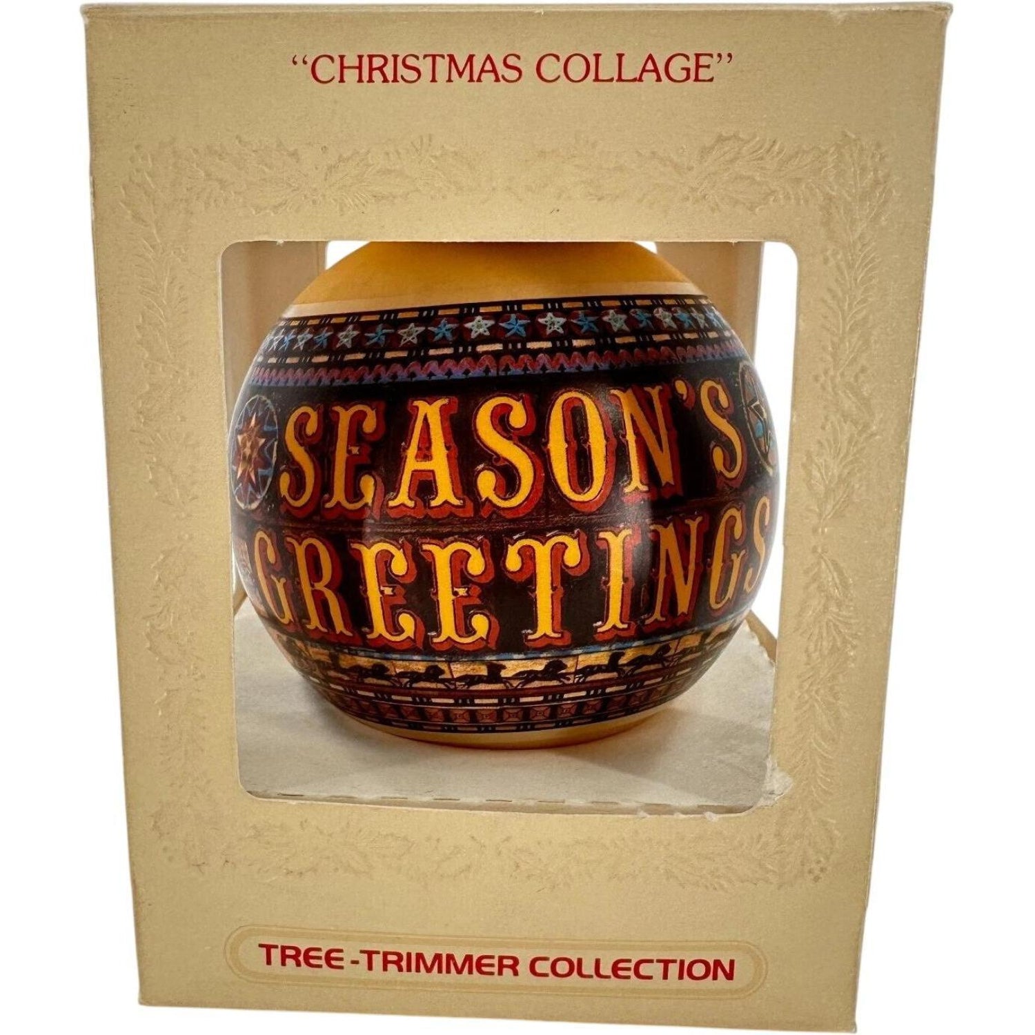 Add nostalgic charm to your holiday decor with this vintage 1979 Hallmark Keepsake "Christmas Collage" ornament. A classic glass ball featuring an elaborate patchwork collage inspired by old-fashioned toy motifs, it proudly reads “Season’s Greetings 1979” across the design—no power or batteries needed. At approximately 4.07″ tall by 3.27″ diameter, this collector's piece arrives as-is (box may vary) and adds timeless elegance to any tree.