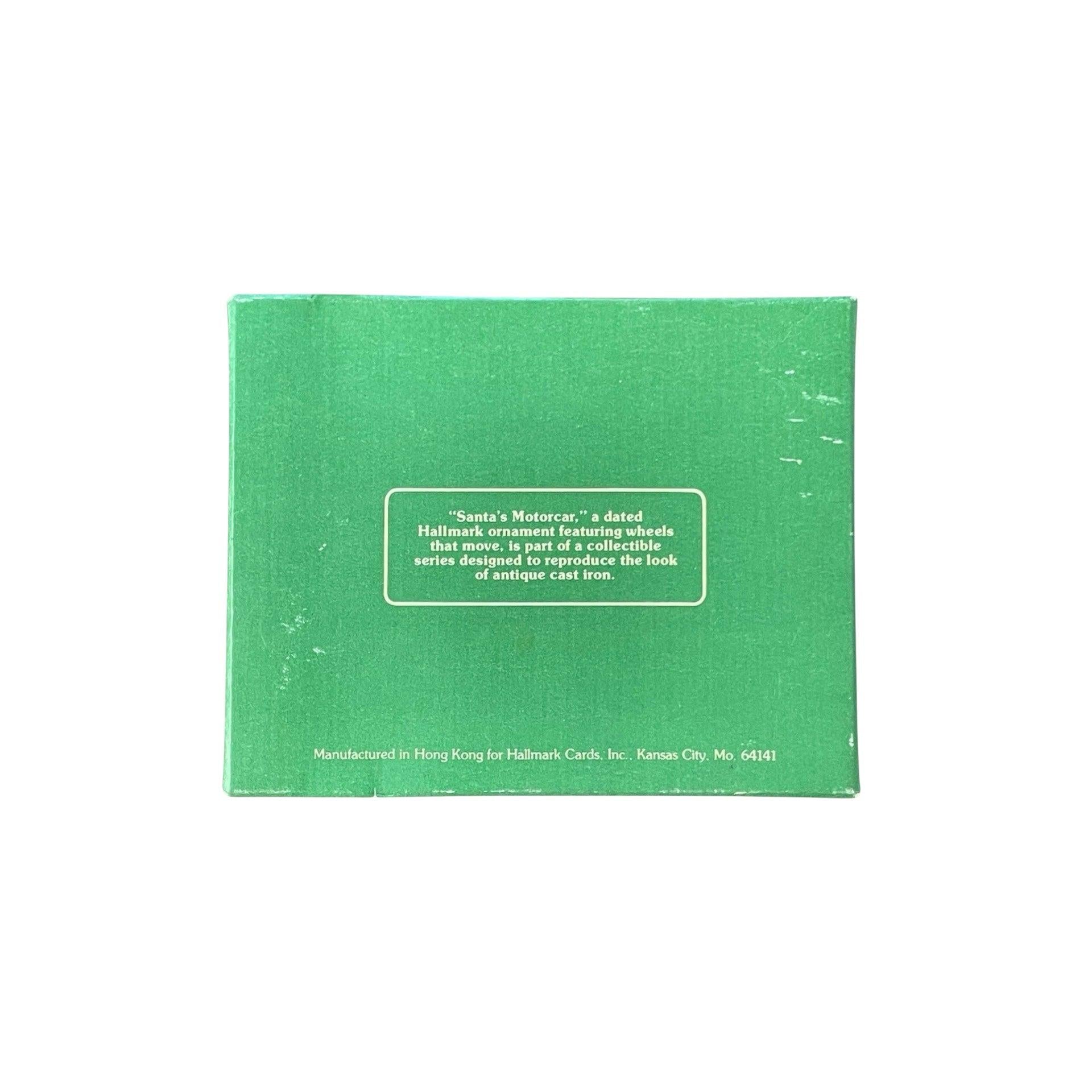 This ornament features Santa Claus riding in a festive antique-style motorcar — the first entry in the “Here Comes Santa” series by Hallmark. The piece captures Santa cheerfully driving his toy-car full of gifts, evoking a nostalgic, classic Christmas vibe. The ornament was originally released in 1979, and a complete package typically includes the ornament and its original box (with the dated tag). There is no requirement for batteries, cords, or lights — this is a traditional hanging/tree-trimmer ornament.