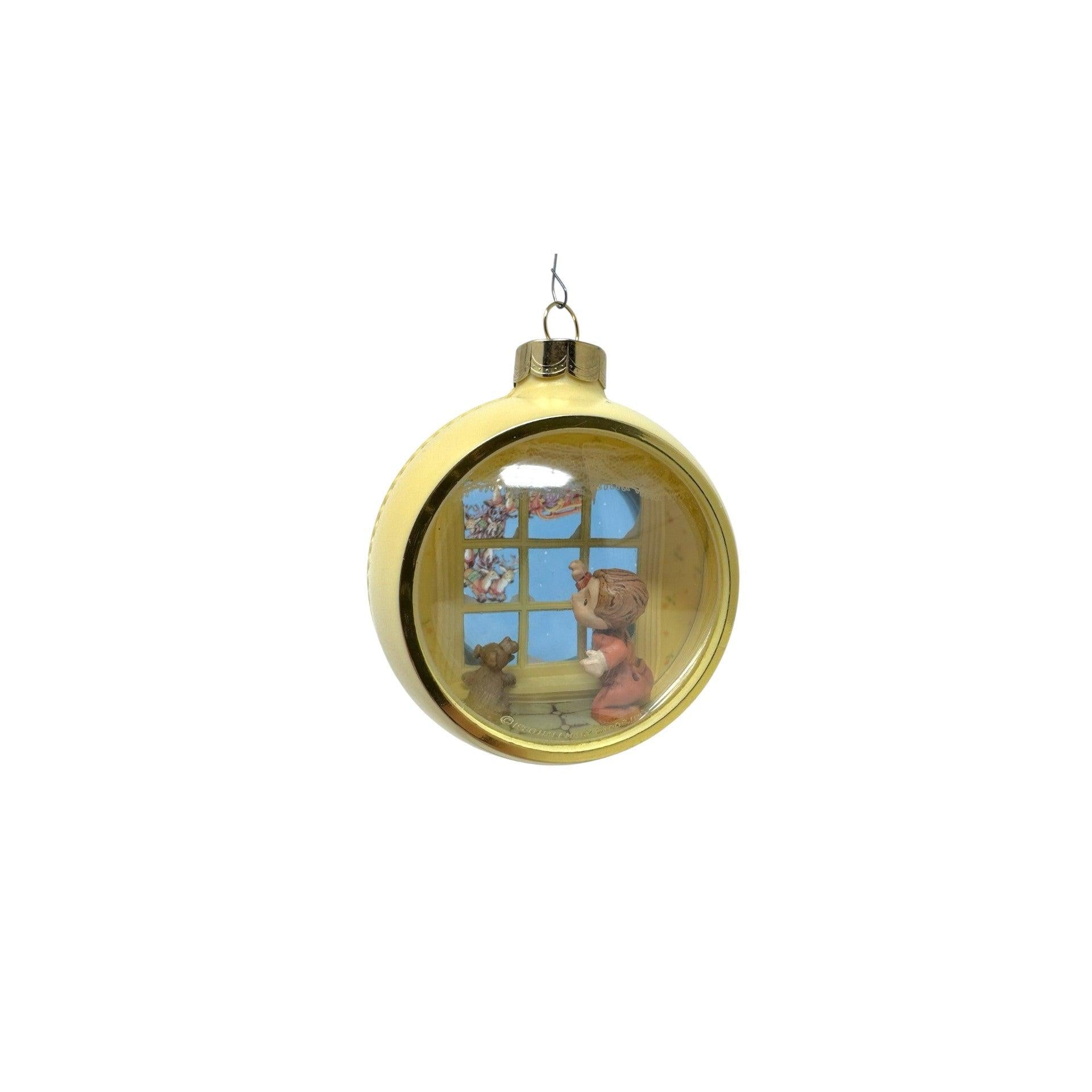 Step back into classic holiday nostalgia with the 1980 A Christmas Vigil (Christmas Window) ornament from Hallmark. This vintage panoramic “Christmas Window” ball shows a young child and his loyal dog gazing out into the night, eagerly watching Santa Claus and his reindeer silhouetted against the starry sky — brought to life with a subtle holographic-style effect inside the ornament. Originally released in 1980, this cherished keepsake typically comes with a hanger and, when complete, the original box and tag, ready to hang on a Christmas tree or display with a vintage Hallmark collection. This ornament requires no batteries, cords, or power — just timeless charm.
