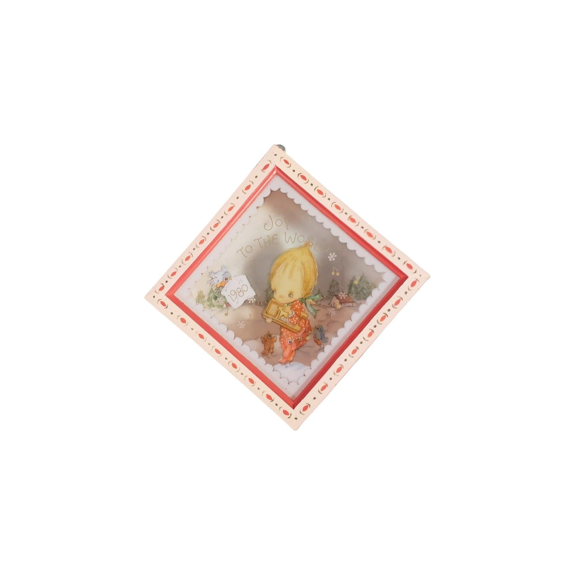 Celebrate timeless holiday warmth with the 1980 Betsey Clark’s Christmas ornament. This charming vintage design features a cheery “JOY TO THE WORLD” shadow-box theme, elegantly framed in dark pink and accented with gold script. Included are the original box and authentic Hallmark tag—making it perfect for gifting or adding to your nostalgic collection. Requires no batteries, cords, or light strings to enjoy its classic appeal.