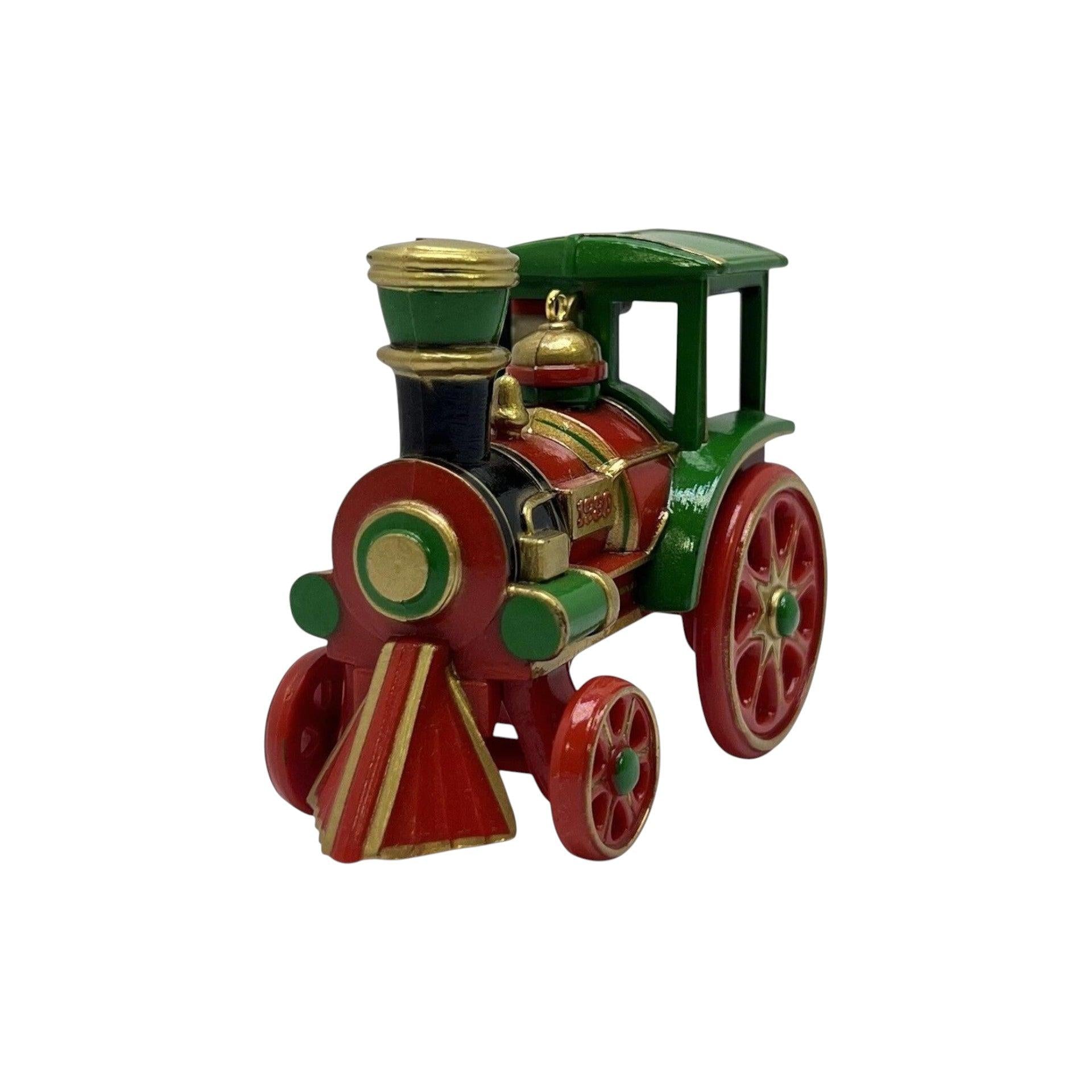 All aboard for festive fun with the 1980 Santa’s Express (Santa Claus) ornament. This vintage delight features Santa cheerfully piloting a red and green steam locomotive with a “1980” side plate, capturing the second release in Hallmark’s beloved Here Comes Santa series. Your purchase includes the original box and tag, perfect for collectors or gifting. Measuring about 3" tall, it requires no batteries, cords, or light strings—just hang and enjoy the timeless holiday charm.