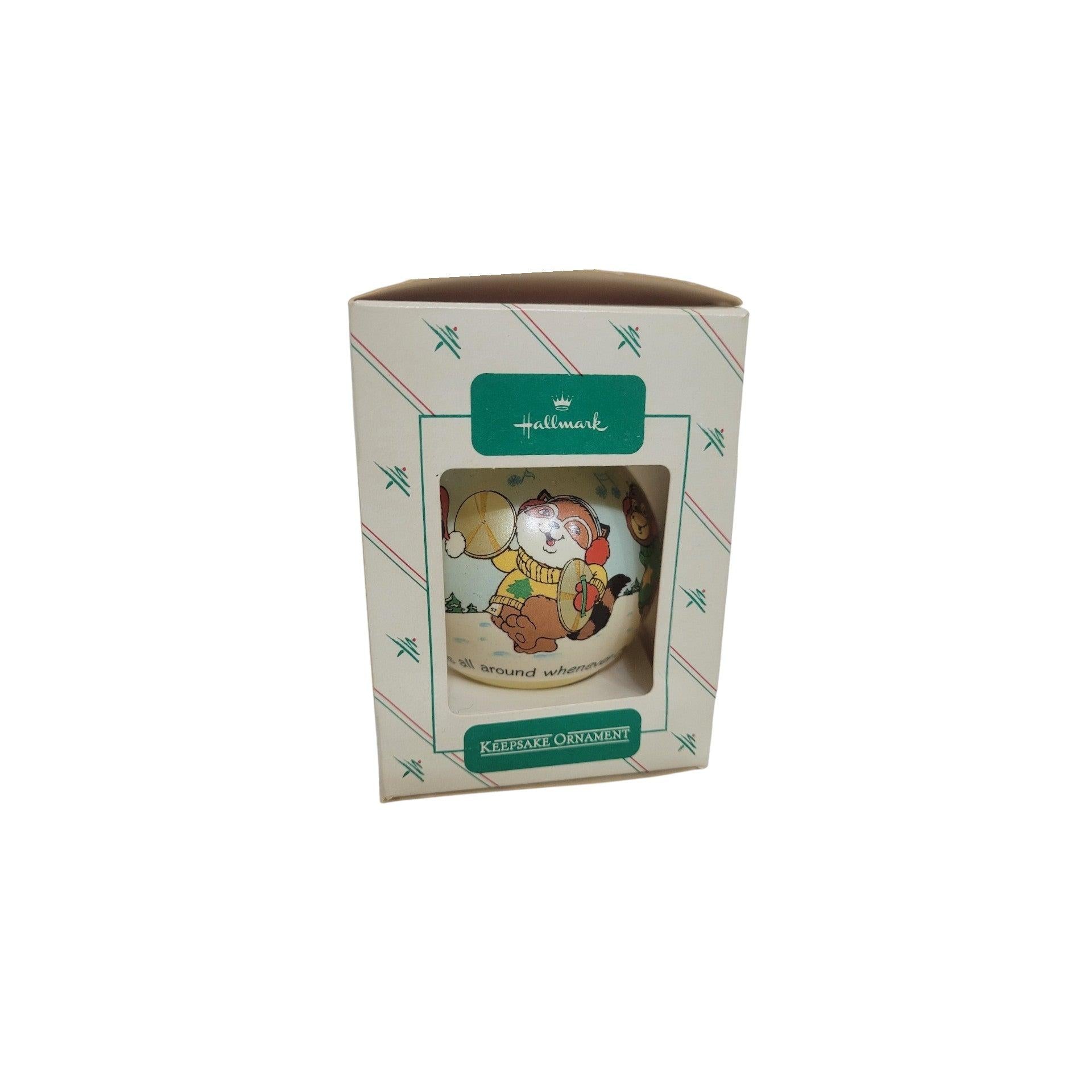 Add a pop of vintage 80s nostalgia to your tree with Shirt Tales Parade, a classic hand-blown glass ball ornament featuring the beloved Shirt Tales characters marching in a festive holiday parade (including familiar faces like Tyg, Pammy, Rick, Bogey, and friends). Many examples include the charming parade sentiment printed on the design, making it a fun throwback for collectors and cartoon fans. Your ornament comes packaged for gifting and storage in its original Hallmark box (when New/In Box). No batteries, cords, or light strings are required—it’s purely decorative and ready to hang.