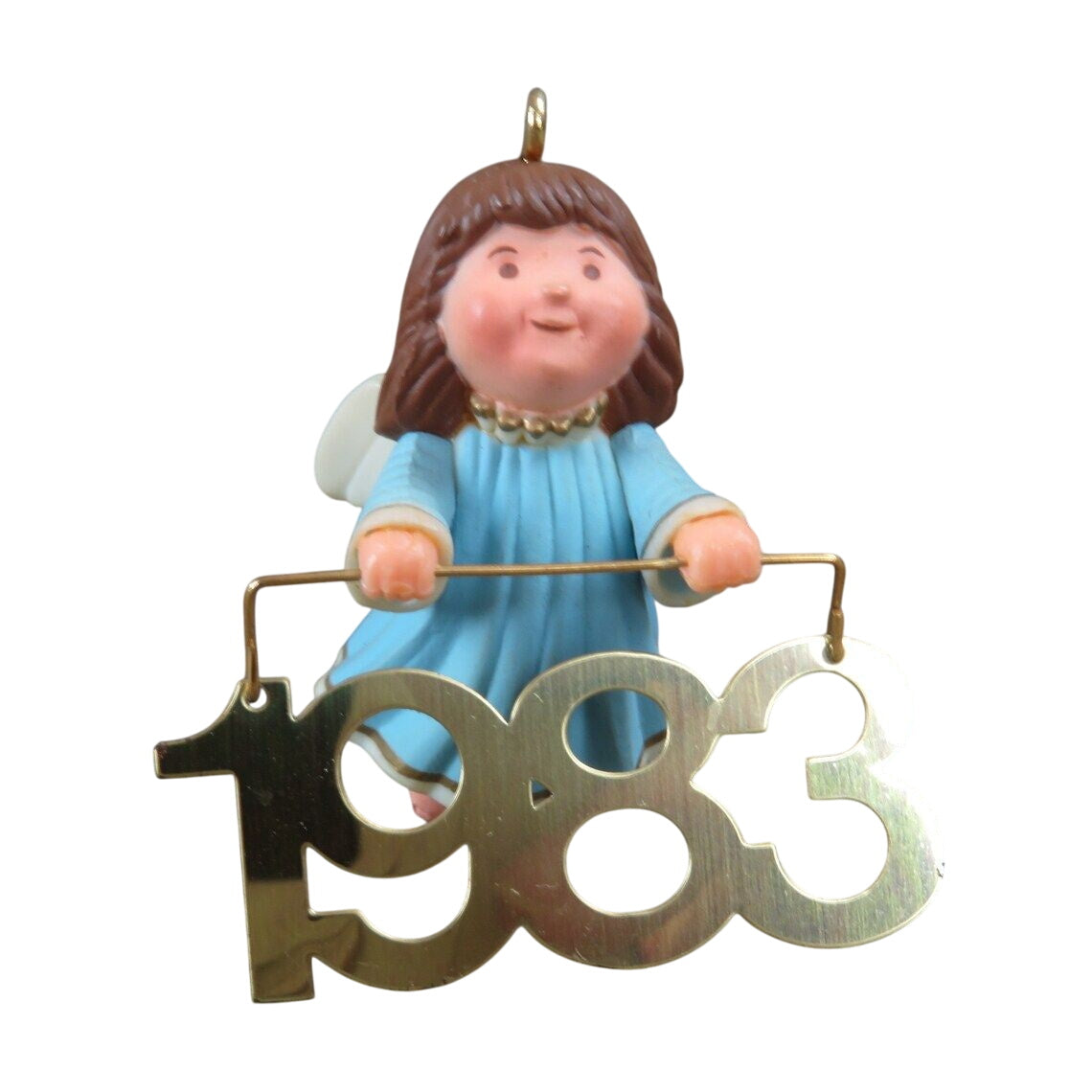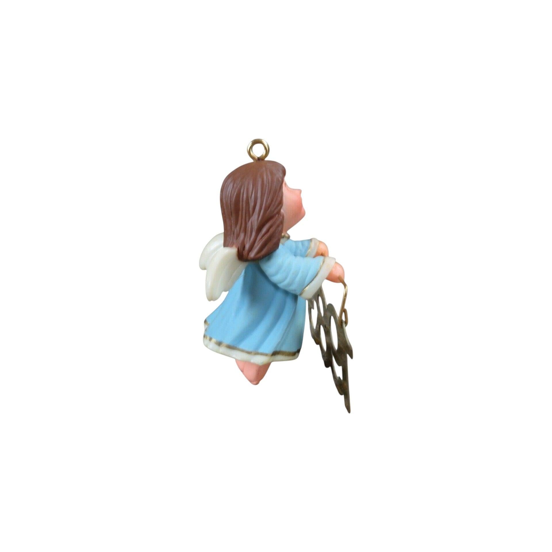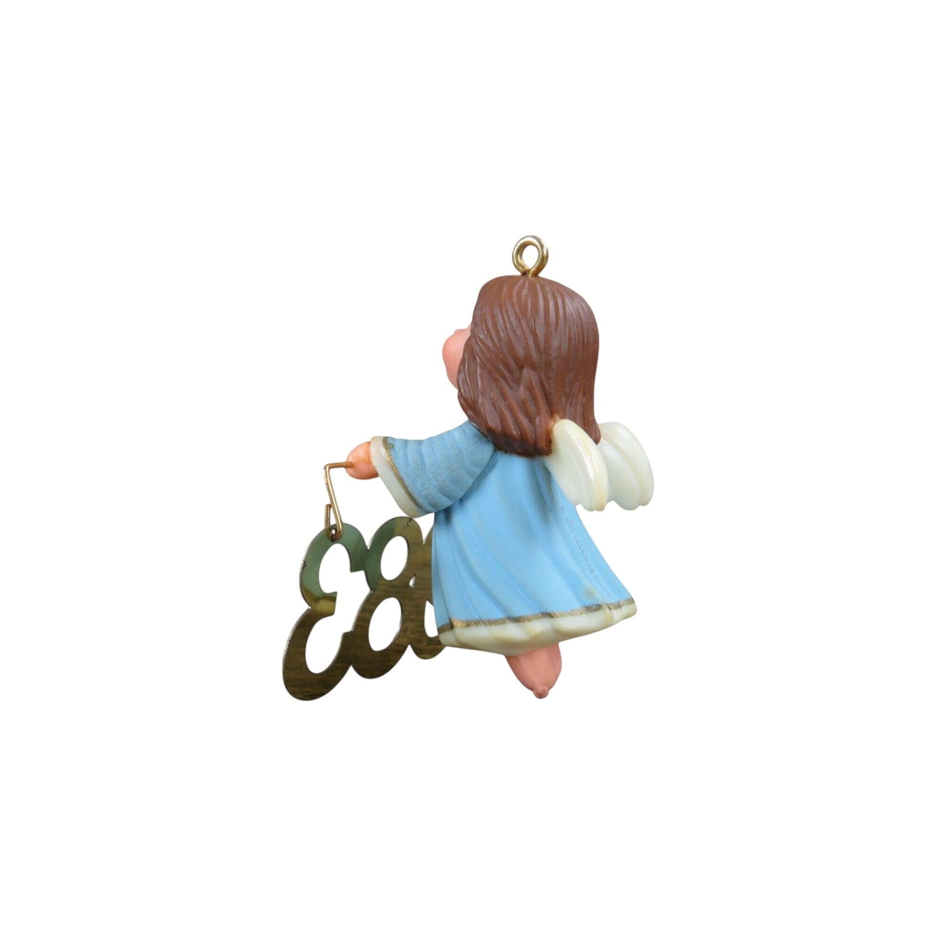Spread the holiday joy with the 1983 Angel Messenger ornament. This charming keepsake, standing 2″ tall, features a sweet angel in a flowing white gown, holding a brass banner that reads “1983”. Designed by Ed Seale, this classic Hallmark ornament comes complete with its original box and Hallmark tag—perfect for collectors or as a thoughtful seasonal gift. No batteries, cords, or lights required; just hang and let this heavenly messenger grace your tree.