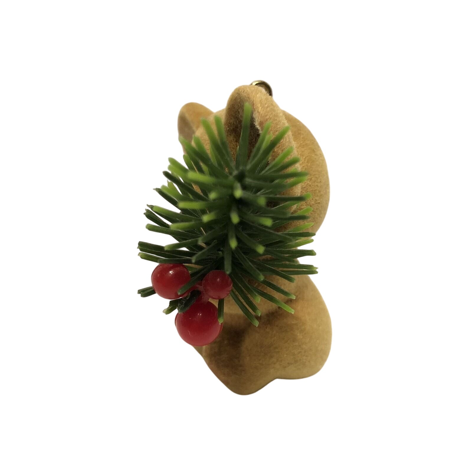 Welcome this adorable 1983 Christmas Koala into your holiday collection—part of Hallmark’s charming Animal Carolers series. The little koala is flocked in soft tan with endearing details like a green fir branch and bright red berries. The ornament is mint in box, complete with original tag and packaging. It's a simple joy—no batteries, cords, or lights required. Hang it and let its festive spirit shine!