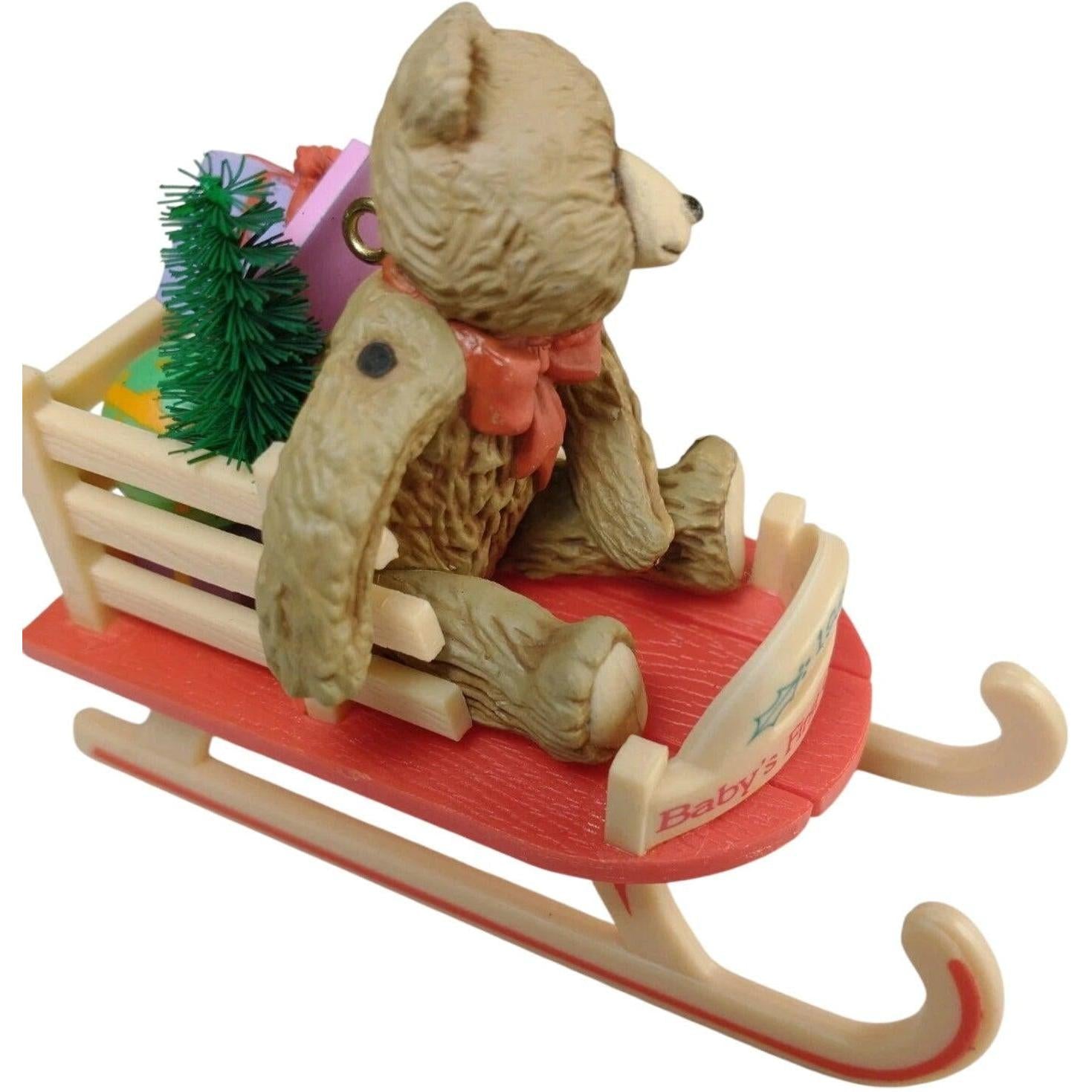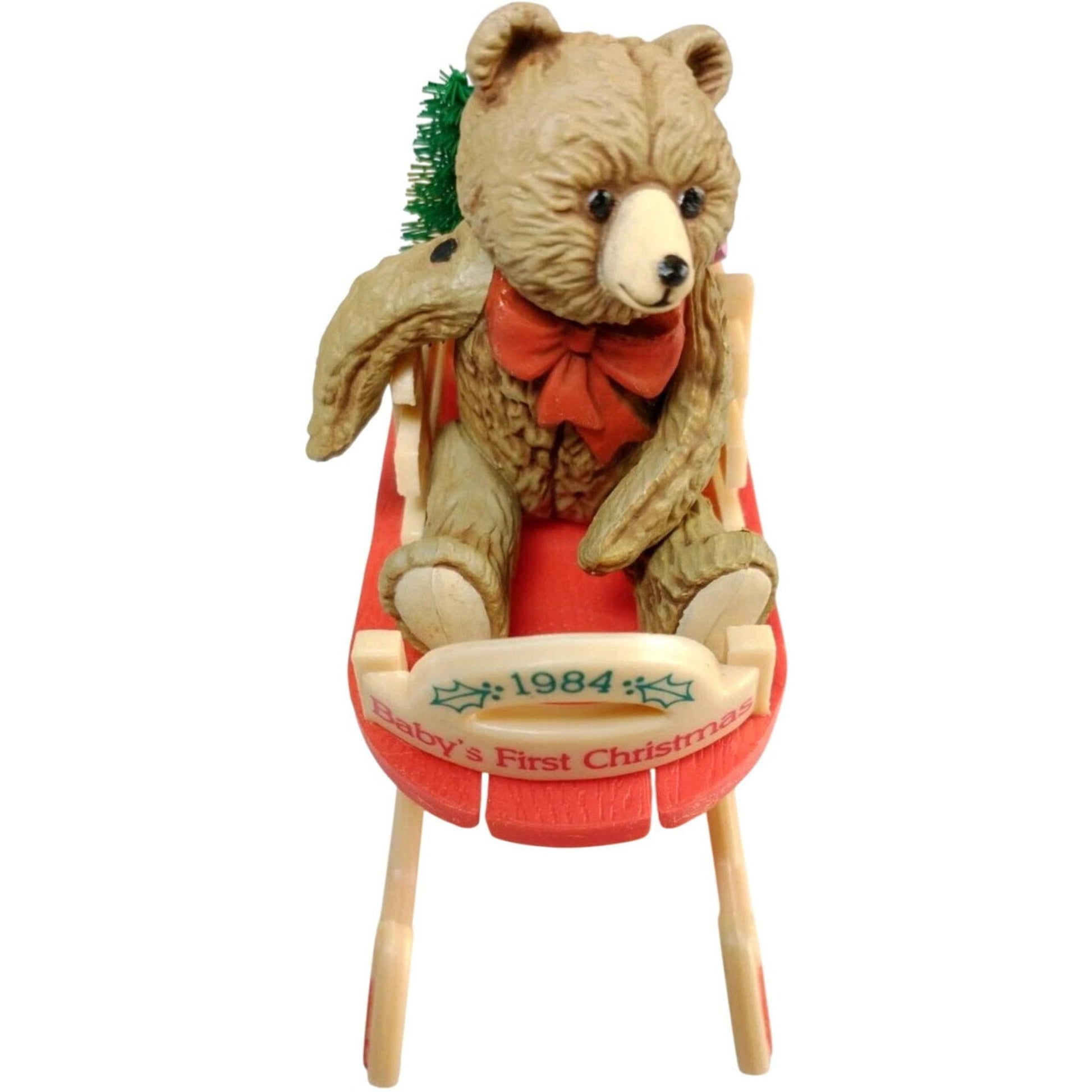 Celebrate a milestone with the heartwarming 1984 Baby’s 1st Christmas (Baby First Christmas) ornament. This delightful keepsake features a charming bear riding in a sled, surrounded by toys like bears, blocks, and spinning tops beneath a festive tree. Crafted by artist Donna Lee and originally released in 1984, this ornament is a perfect commemorative gift for newborns or family memoires. It comes mint-in-box, ideal for collectors or as a nostalgic holiday display. No power needed—just hang and enjoy the vintage magic.