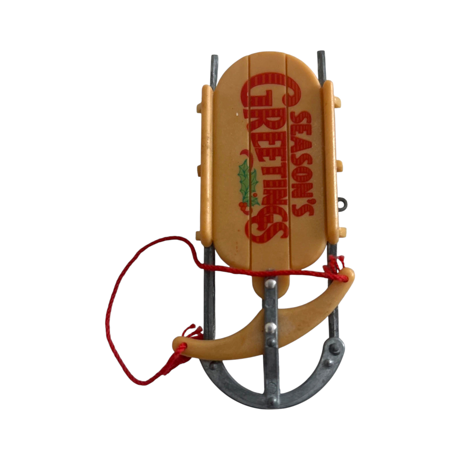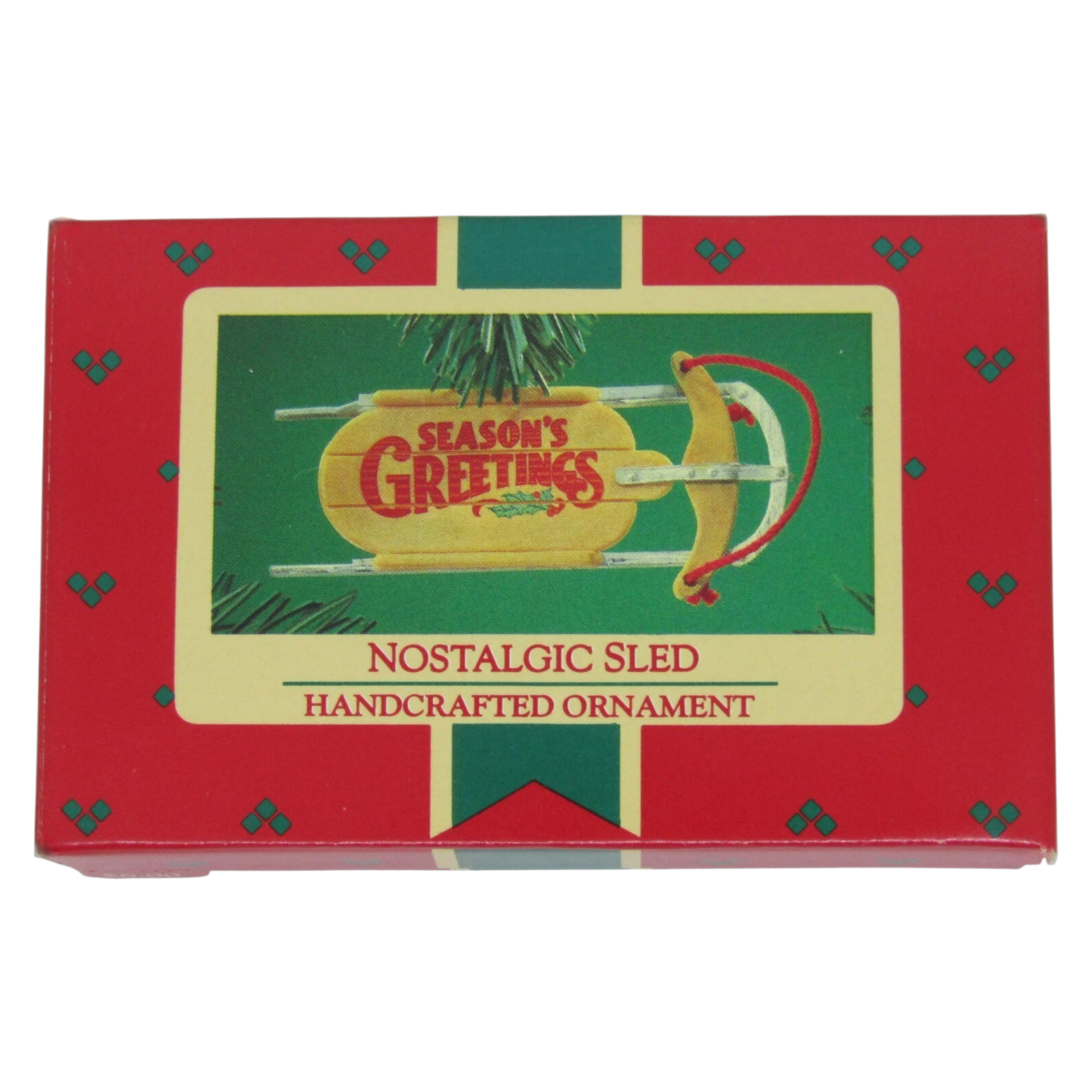 Experience a blast from the past with this charming 1984 Nostalgic Sled Keepsake Ornament, featuring a miniature red sled complete with detailed rope handle for that retro-play vibe. It arrives in its original box and hang tag—perfect for collectors seeking mint-in-box treasures. No batteries, cords, or light strings are required to enjoy this timeless piece—just hang it and enjoy!