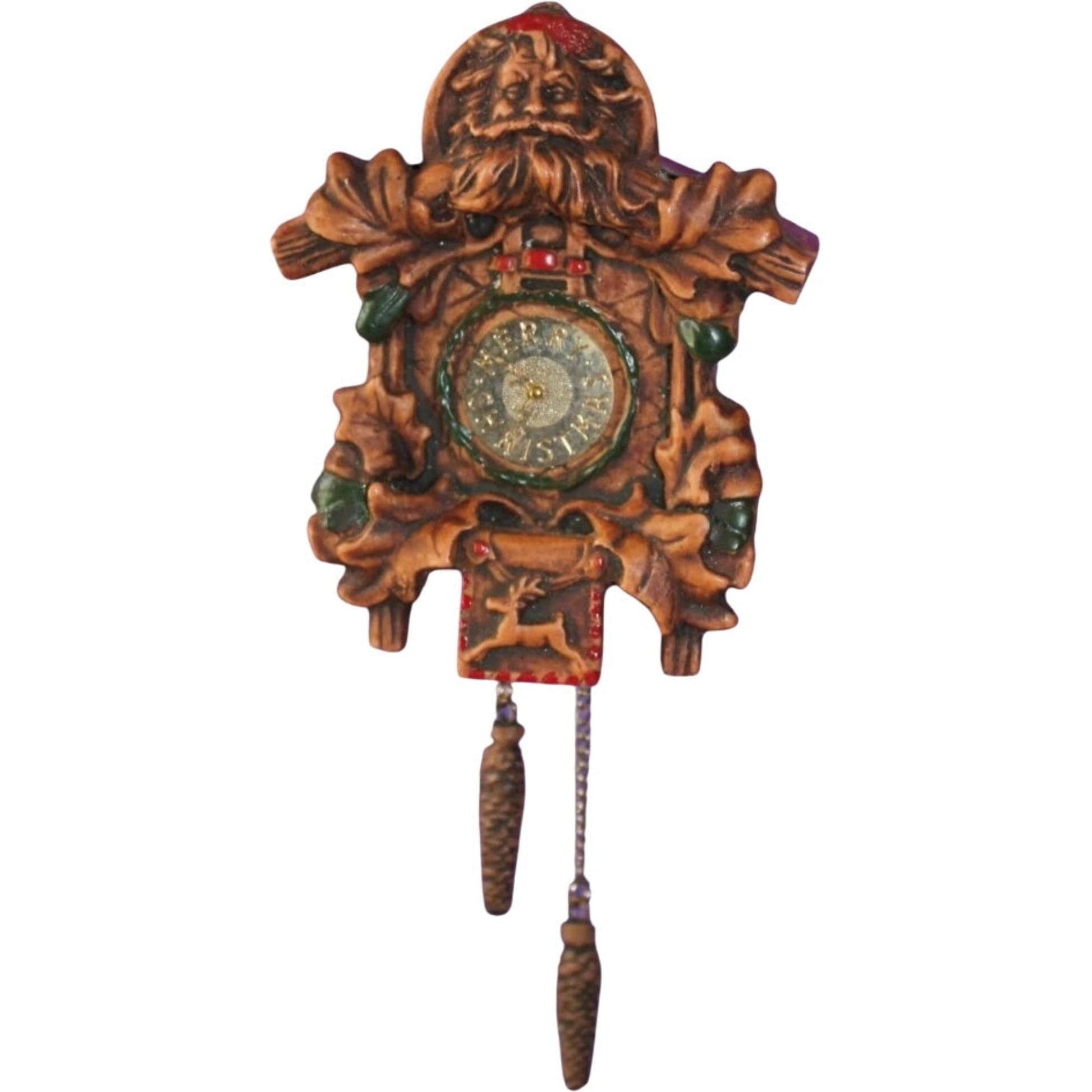 Step into charming tradition with the 1984 Old‑World Cuckoo Clock ornament. This miniature masterpiece features a classic cuckoo‑clock design complete with carved floral details, decorative pinecone weights, and a cheerful bird poised at the clock face. Crafted in mixed materials and richly hand‑painted, it measures just under 5 inches tall. Mint‑in‑box listings include the original tuck‑box and hang tag—no batteries, cords, or light strings needed. Simply hang and let this nostalgic topper bring old‑world cheer to your holiday décor.
