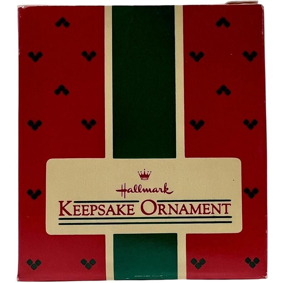 This delightful 1985 Ice-Skating Owl ornament features a frosty white owl wearing a festive red-trimmed hat as it gracefully glides on ice. The piece is handcrafted and painted with fine detail, capturing charming winter whimsy. It ships in its original keepsake box, along with a ribbon hanger and Hallmark hang tag. As a decorative