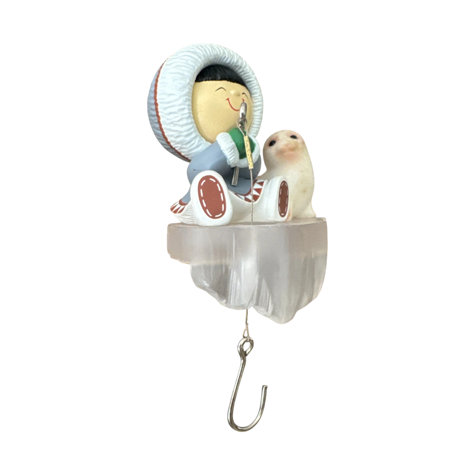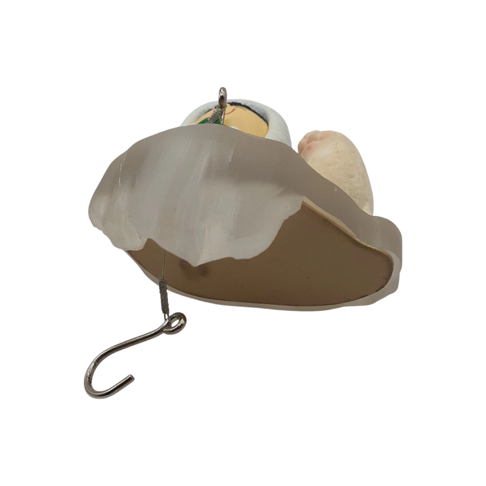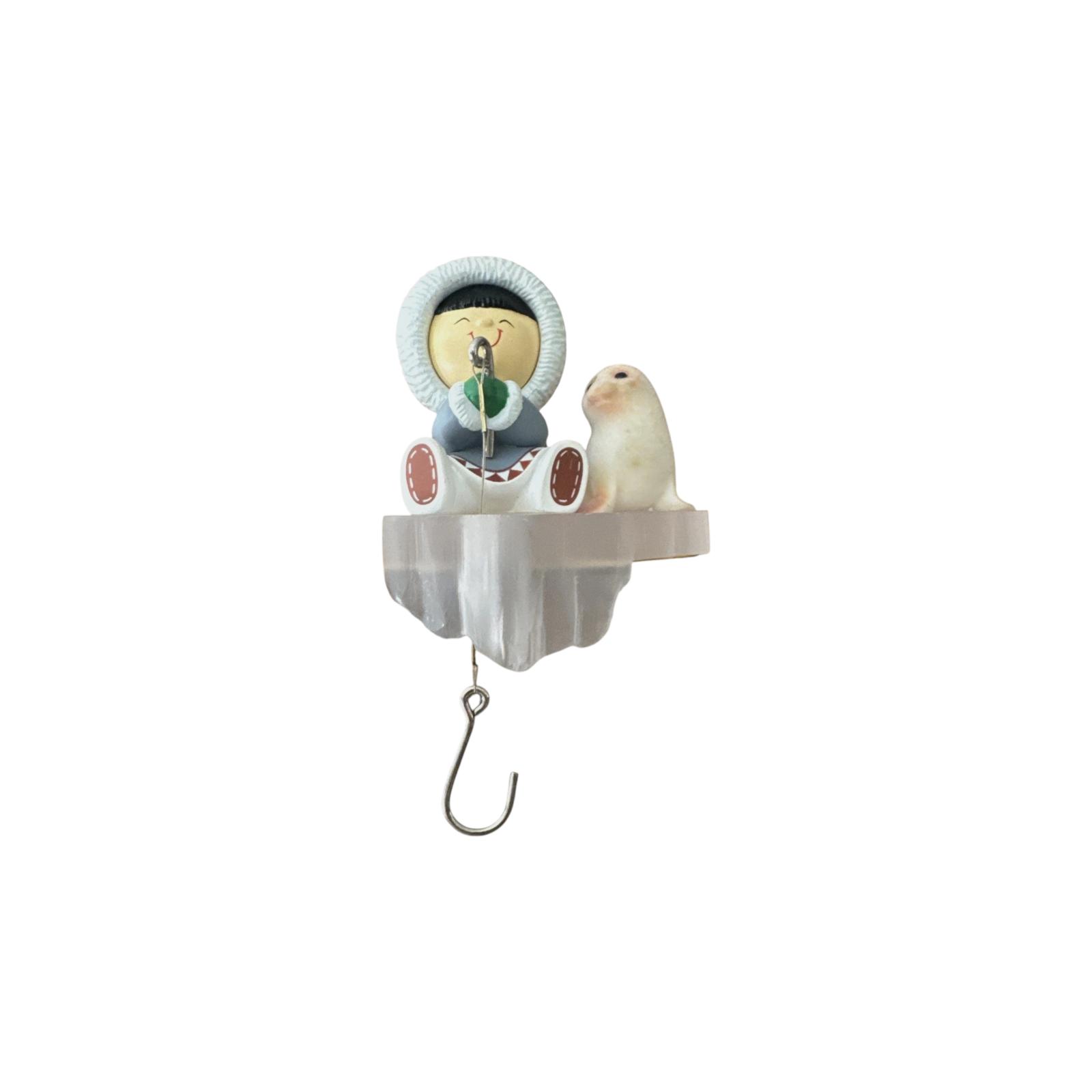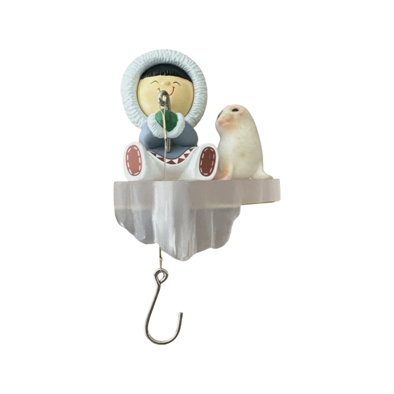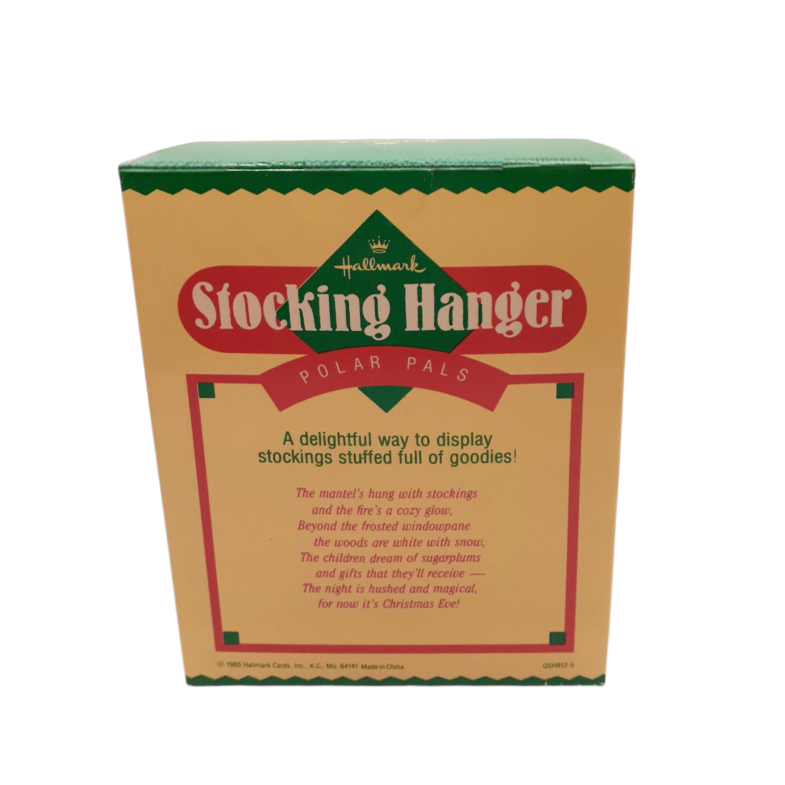 Brighten your holiday mantle with the 1985 Polar Pals – Stocking Hanger, featuring Frosty the Eskimo perched on icy blue ice with his playful penguin friend as they enjoy ice fishing together. This delightful Frosty Friends piece doubles as a stocking hanger, holding your Christmas stocking securely in place. Packaged in its original box dating from 1985–1987, it includes festive branding and collector-worthy presentation. No batteries, cords, or light attachments are required—its charm lies in whimsical design and nostalgic seasonal appeal.