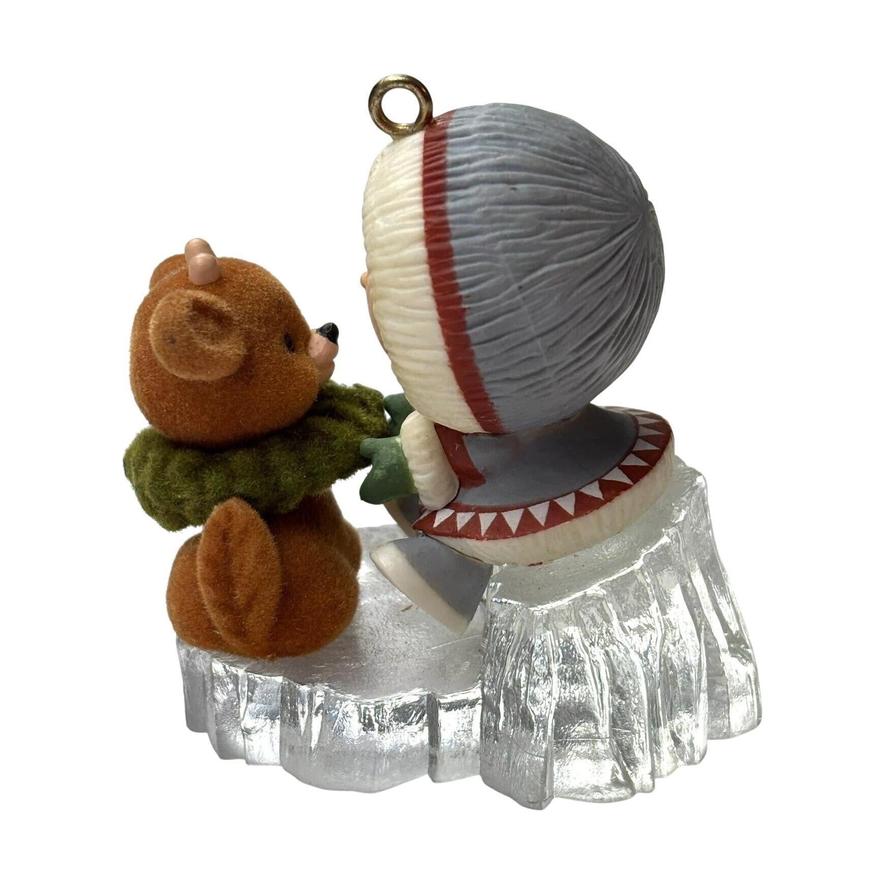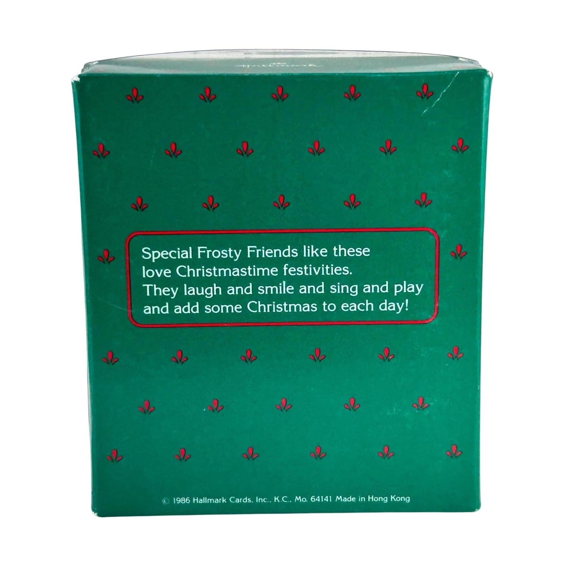 Experience heartwarming nostalgia with Frosty Friend, released in 1986 as the seventh ornament in Hallmark’s beloved Frosty Friends series. This miniature features a smiling snowperson in a cozy hooded coat, gently presenting a baby reindeer adorned with a fuzzy wreath. Crafted with delightful mixed materials and designed by Bob Siedler, the ornament typically includes the original green collector’s box and ornament tag. No batteries, cords, lights, or motion/sound features are required—just pure festive charm built right in.