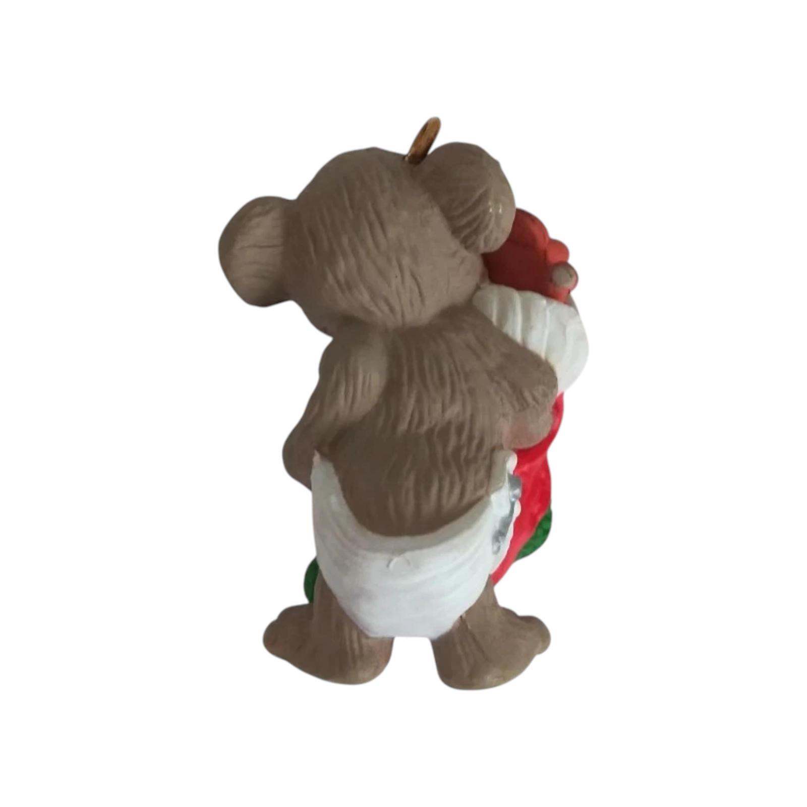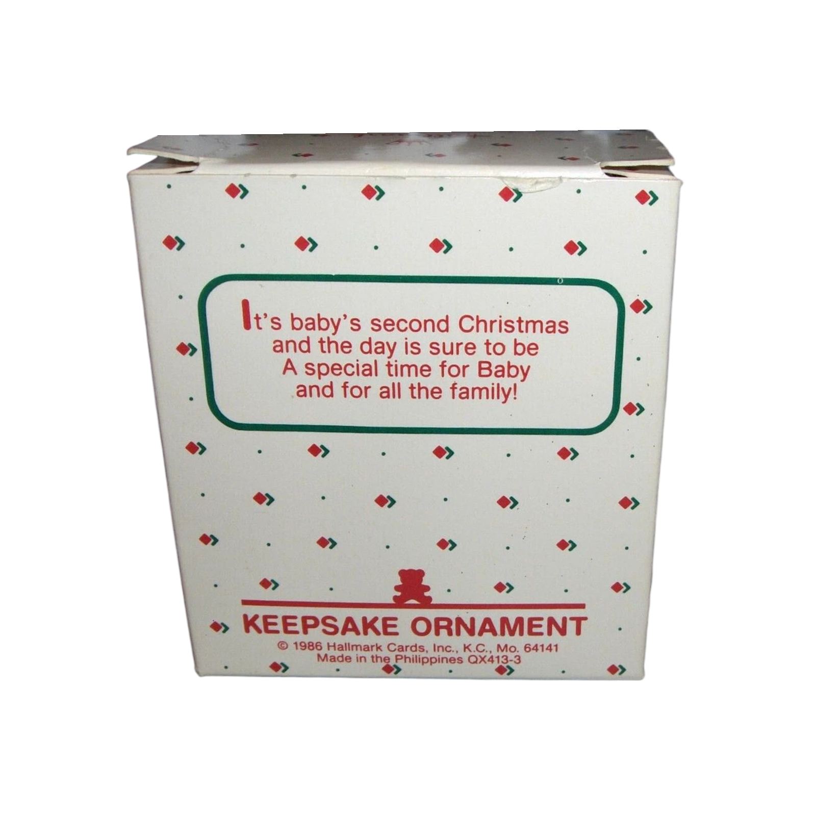 Celebrate a precious milestone with the 1986 Baby’s Second Christmas ornament — a delightful piece from Hallmark’s Child’s Age Collection. This endearing keepsake features a sweet mouse cradling a red Christmas stocking that bears the inscription “1986 Baby’s 2nd Christmas,” with a tiny teddy bear peeking out. The whimsical sculpted detail captures the innocence and joy of a baby’s second holiday season.
