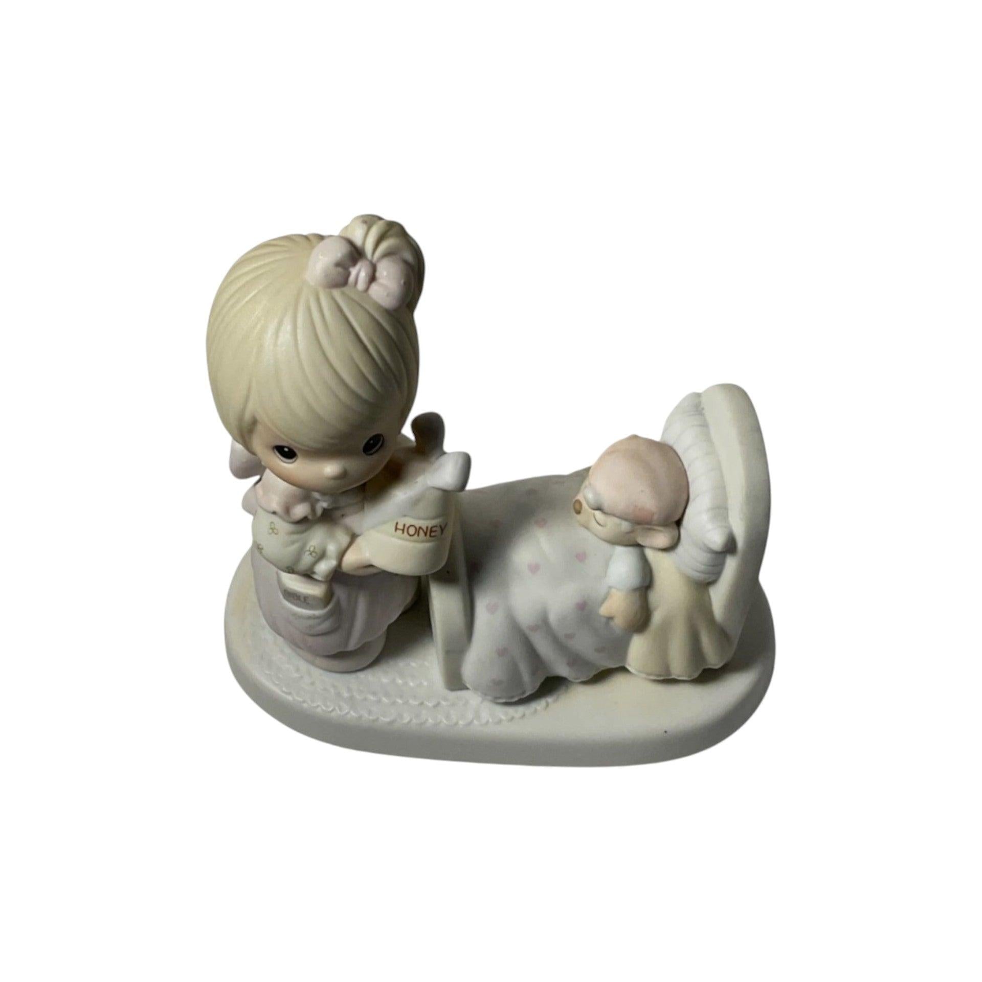 Make Me a Blessing is a classic vintage Precious Moments figurine (item #100102), first produced in 1986 during the brand’s influential era of hand-painted porcelain bisque collectibles. This touching piece typically shows a young Precious Moments character offering a sincere prayer or blessing, embodying the theme of kindness and gratitude in everyday life. Its soft pastel palette and matte finish lend a timeless, heartwarming quality that resonates with collectors and makes a meaningful gift for encouragement or spiritual reflection.