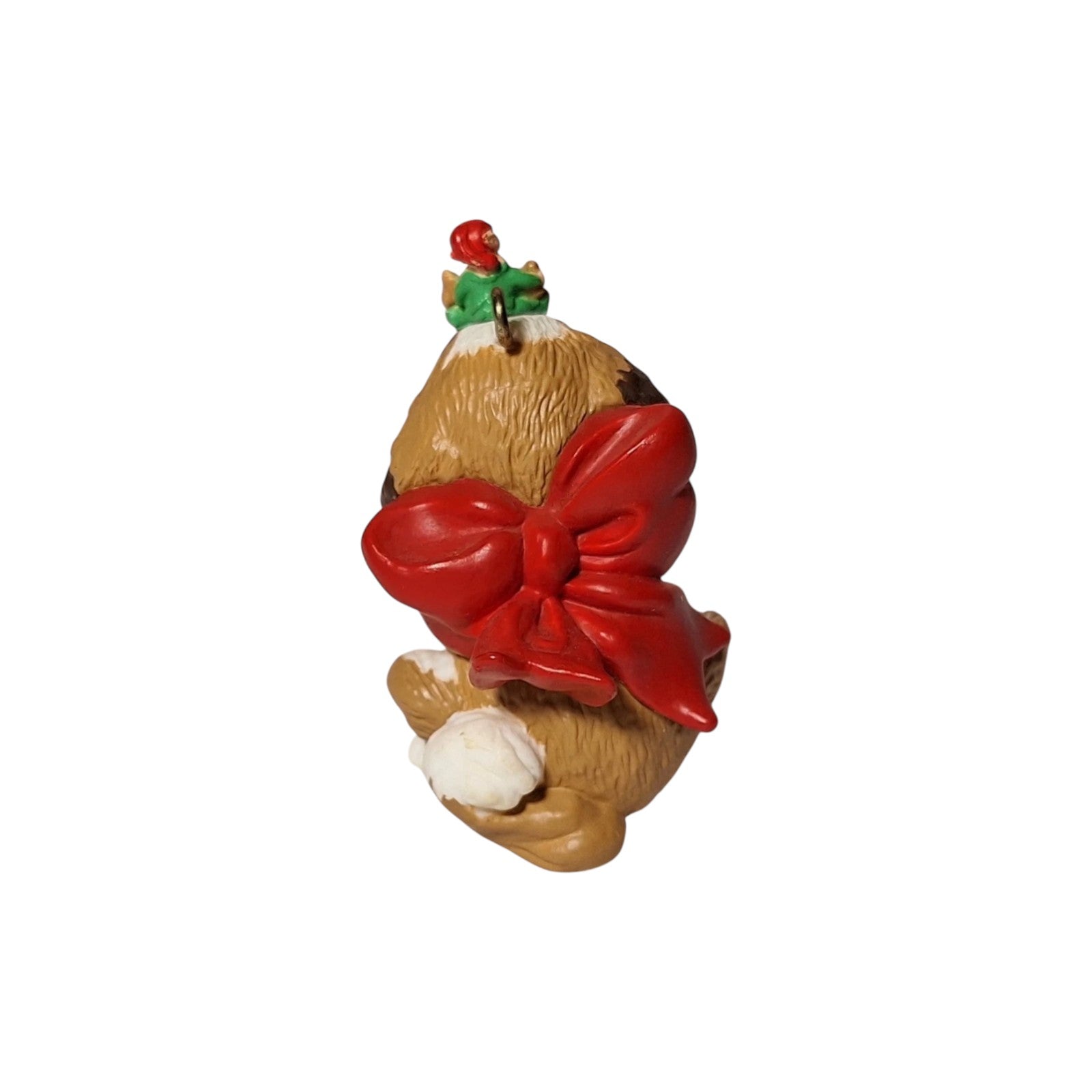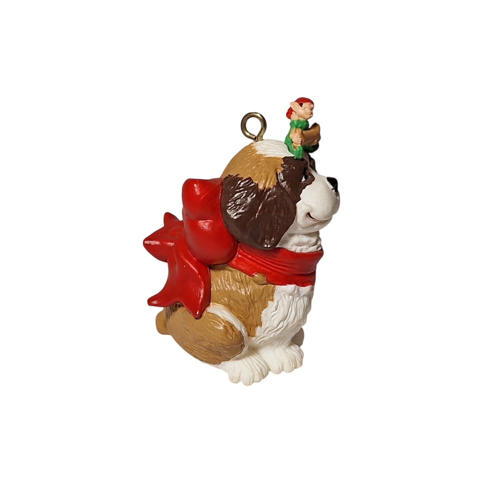 Meet Puppy’s Best Friend, introduced in 1986. This endearing ornament features a floppy-eared Saint Bernard wearing a bright red scarf, with a tiny elf perched atop his head holding a dog bone as a gift. Crafted by Duane Unruh, this handcrafted piece commonly includes the original red-and-green collector’s box and ornament tag. No batteries, cords, or lights are needed—just a sweet slice of Christmas friendship ready to hang.