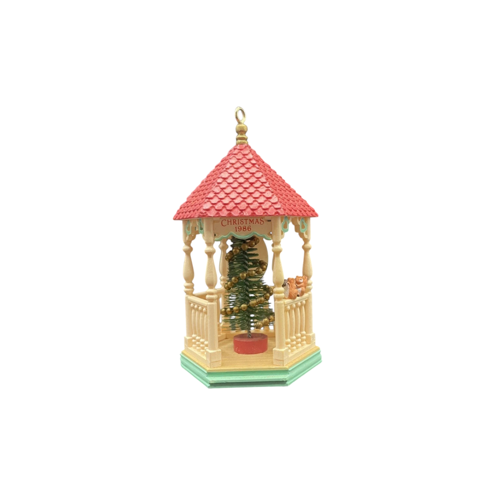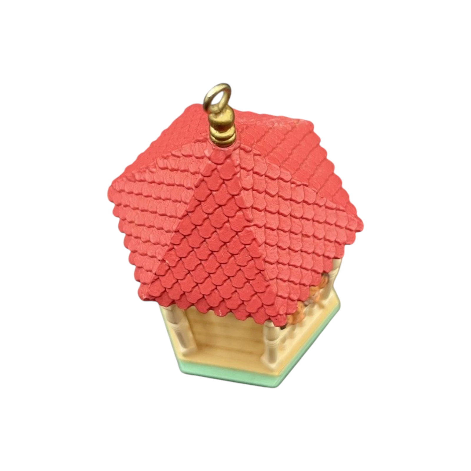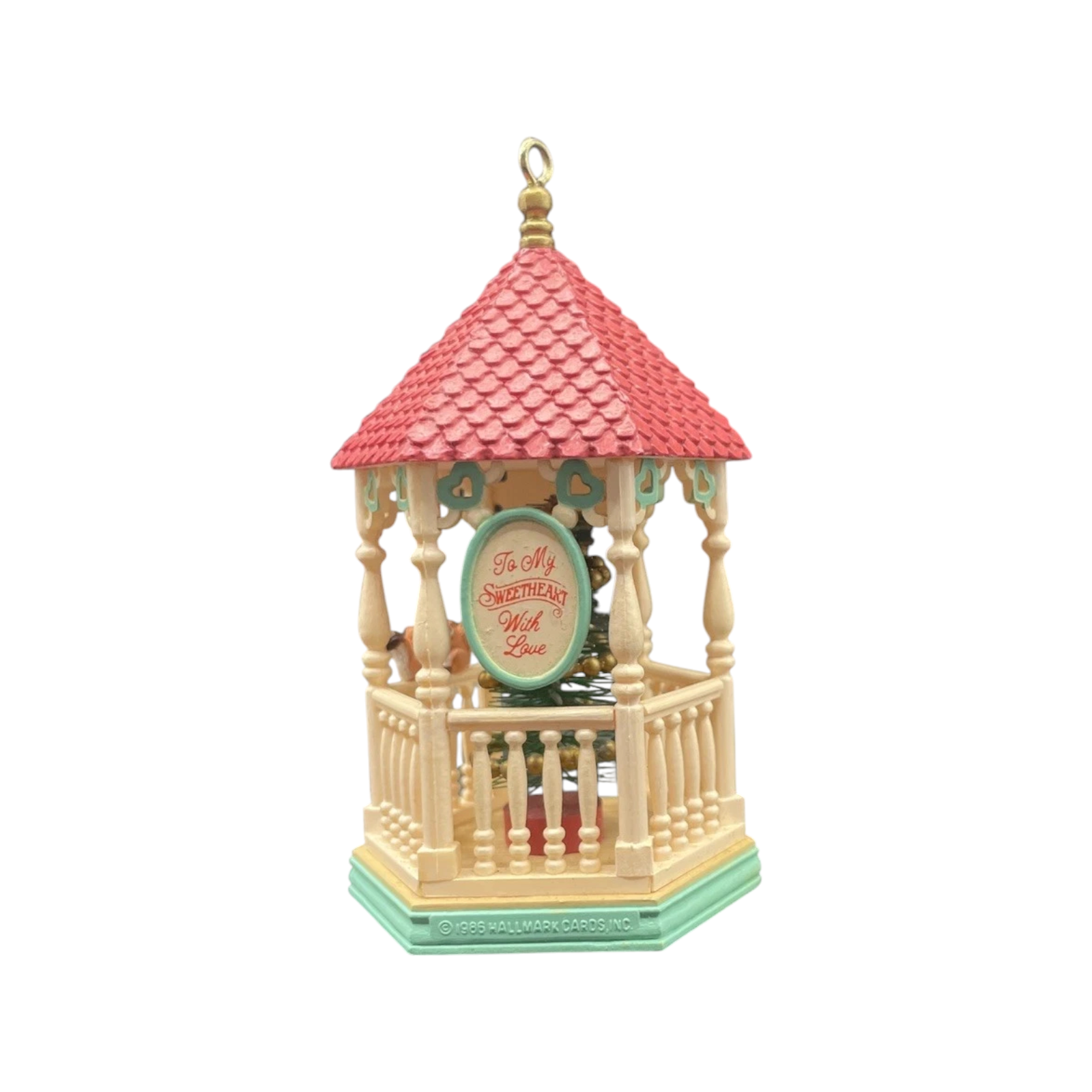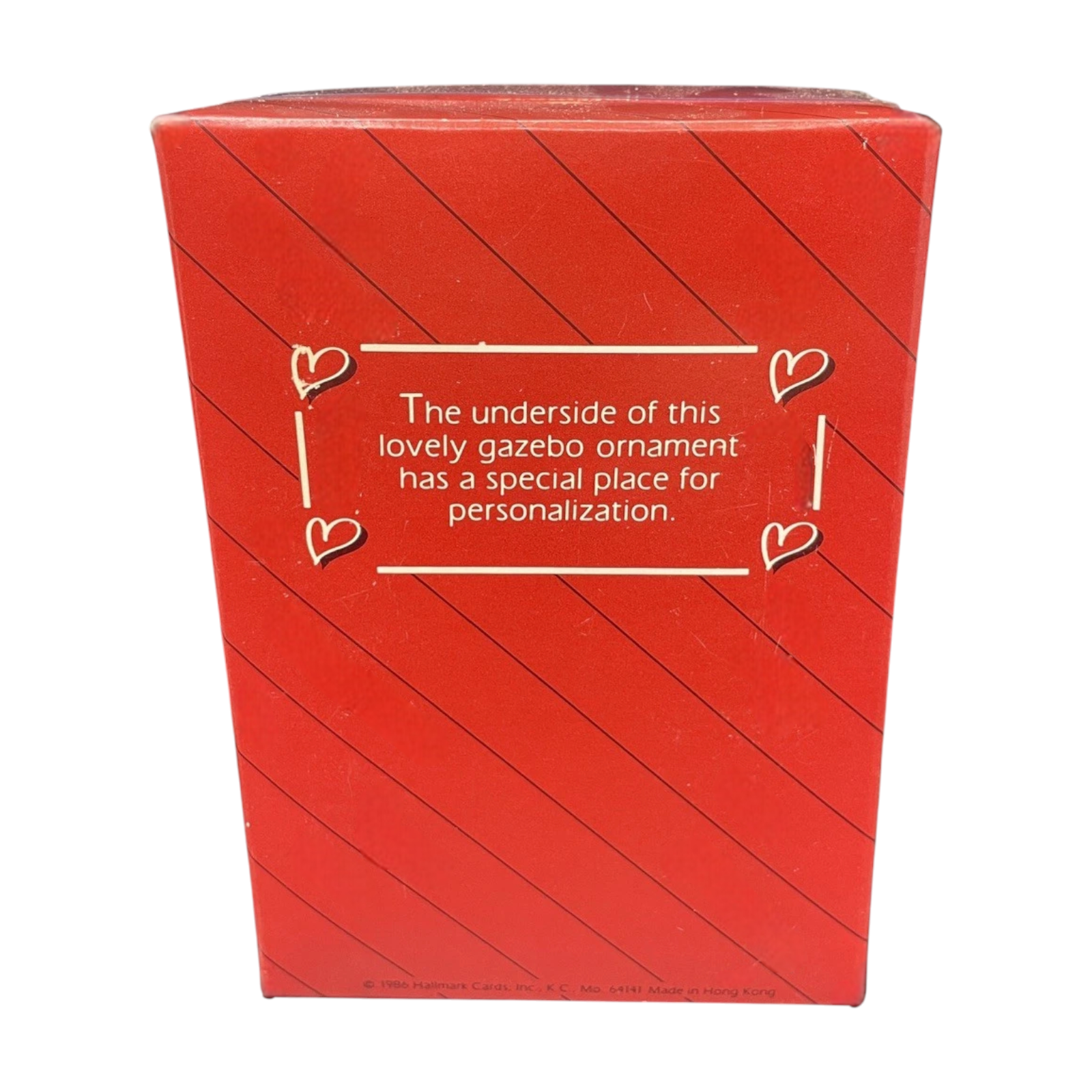 This charming 1986 Hallmark ornament, titled Sweetheart, captures the cozy romance of a classic Victorian cottage dressed for Christmas. The ornament features a red-and-white house with heart-shaped shutters, snow-dusted rooflines, and tiny wreaths on each window. A sculpted heart motif above the front door adds a whimsical, loving touch — perfectly fitting the Sweetheart name. Part of Hallmark’s Buildings & Houses series, this piece showcases intricate hand-painted detailing and warm vintage colors. It was originally issued in a dated Hallmark Keepsake box and includes its hanging loop for display. No batteries, cords, or lights are required — simply hang this little house on your tree to add a nostalgic touch of holiday warmth.