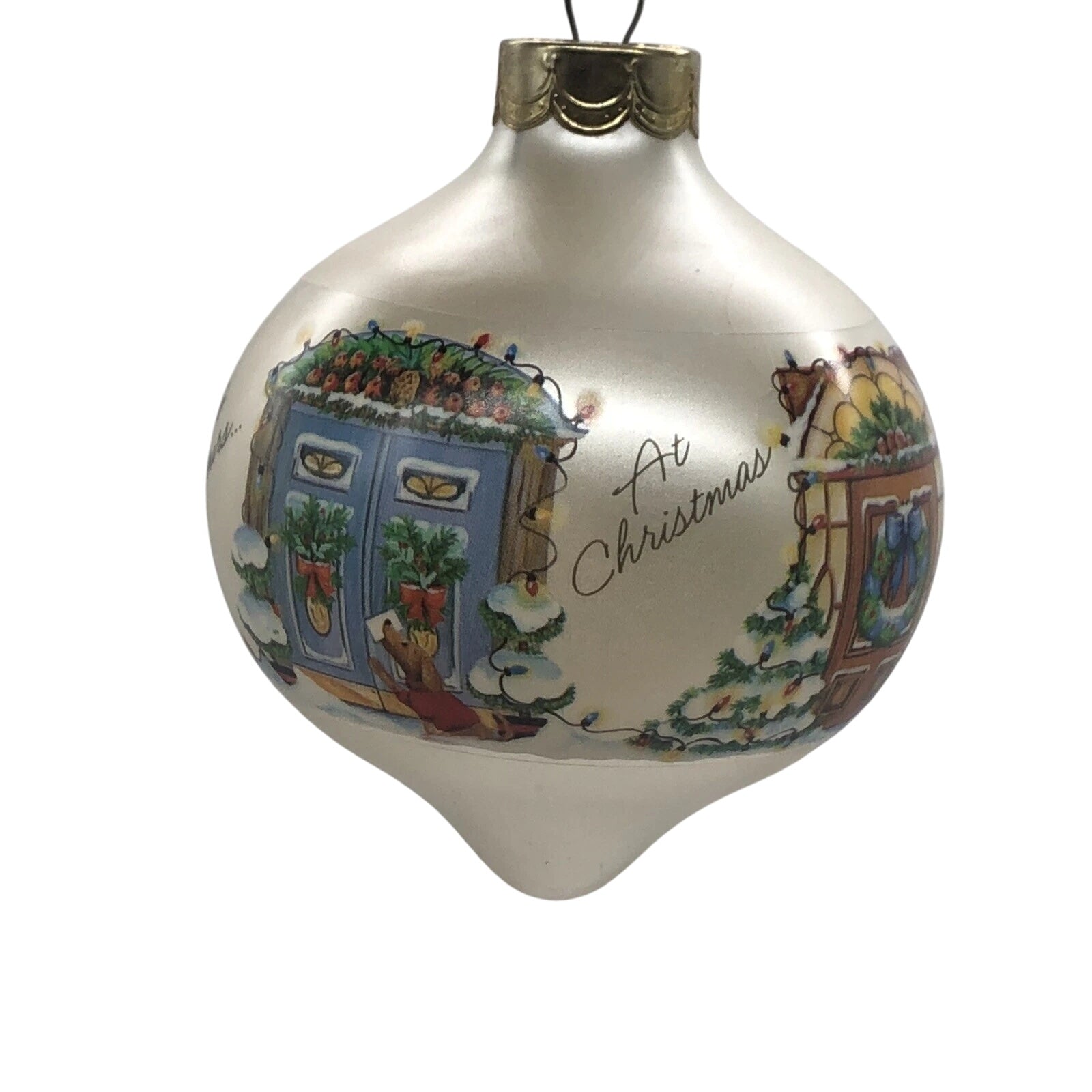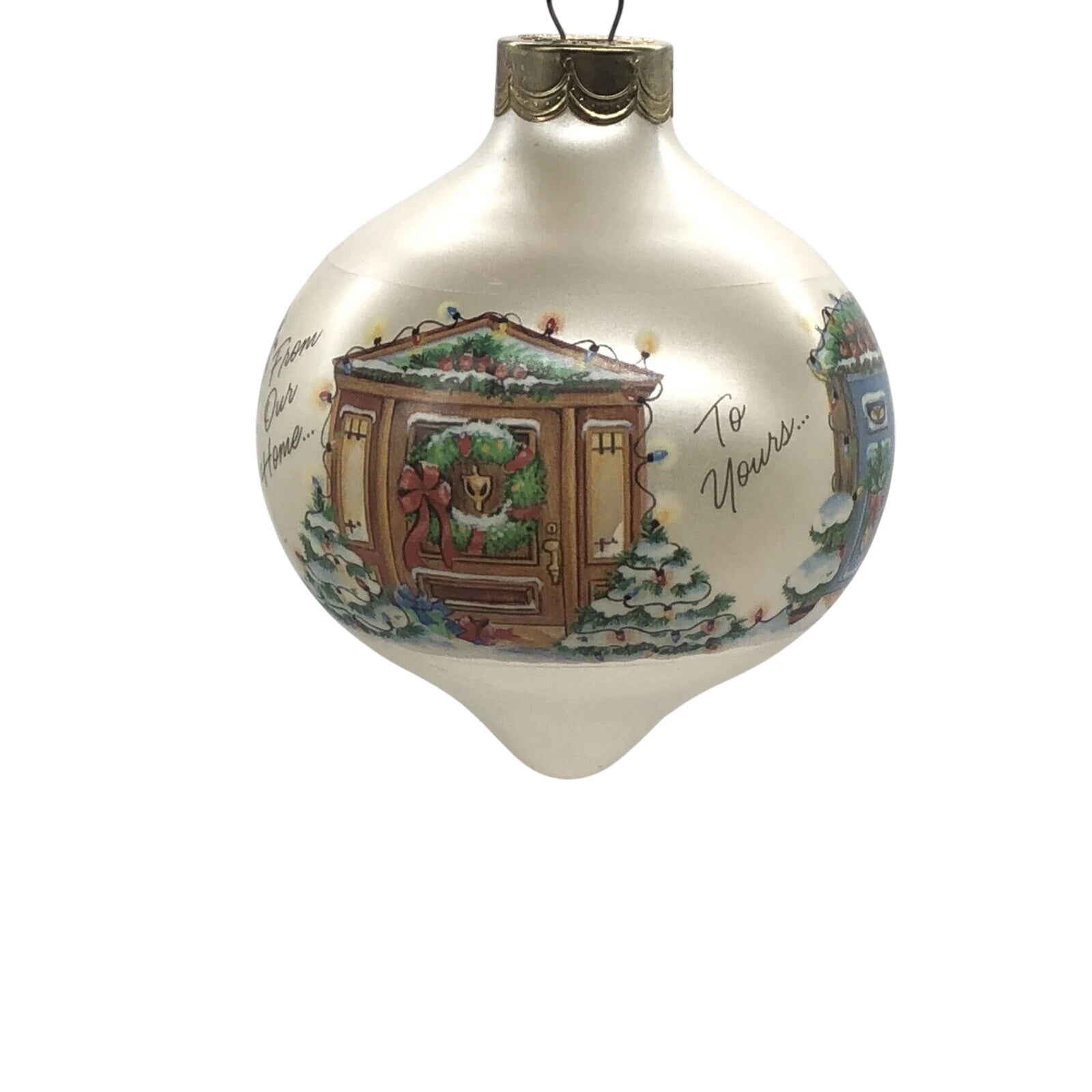 Invite a warm, nostalgic greeting into your holiday décor with the 1987 From Our Home to Yours (Glass Ball) ornament. This teardrop-shaped glass globe features beautifully painted scenes of welcoming doorways adorned for the holidays, accompanied by the heartfelt phrase “From Our Home to Yours.” Designed by Michele Pyda-Sevcik and dated 1987, this ornament arrives mint in its original Hallmark box—perfect for collectors or as a meaningful gift. No power needed—simply hang and let the timeless charm speak for itself.