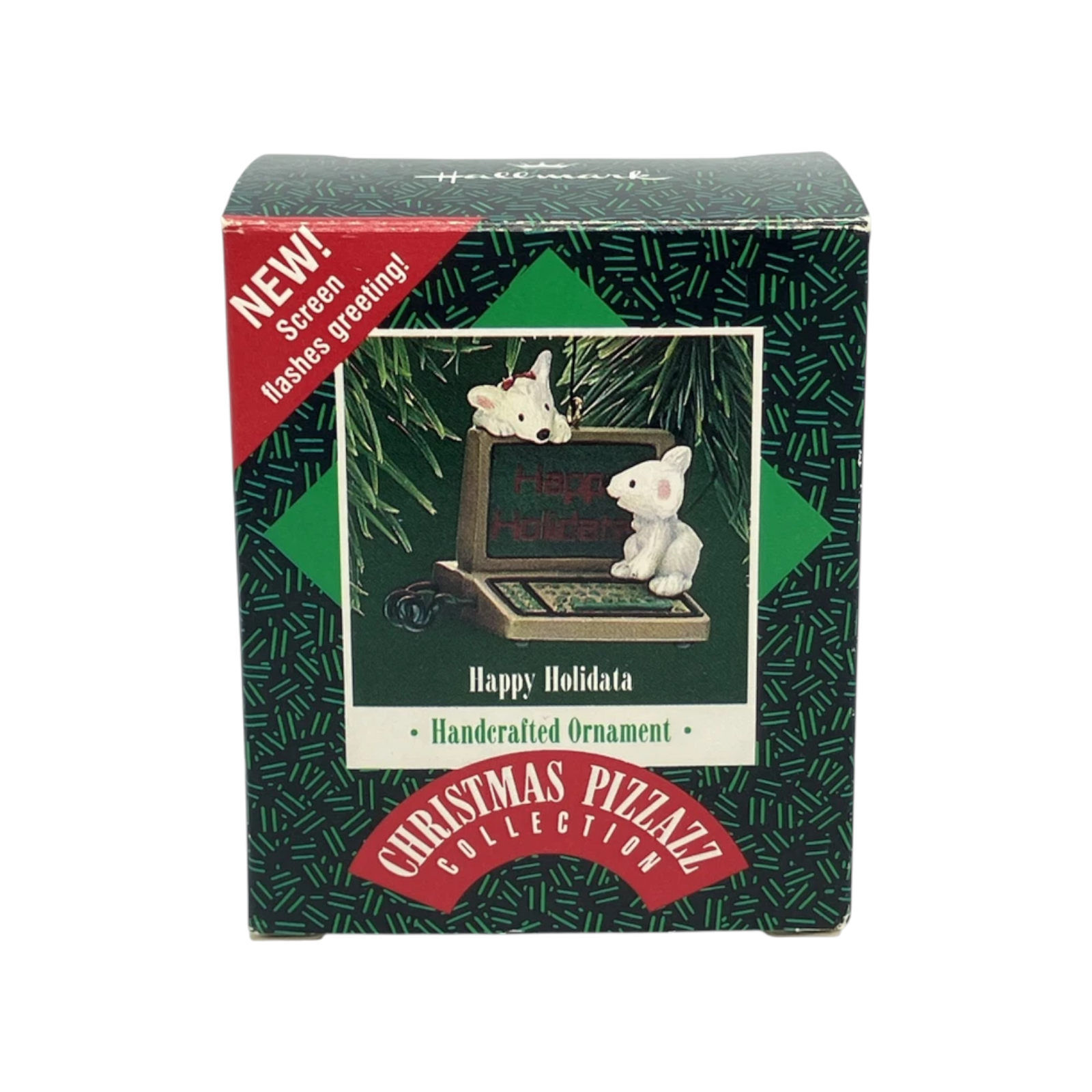 The 1987 Happy Holidata ornament features an adorable polar bear bundled up for the holidays, sitting in front of an early-style computer—a fun nod to the “high-tech” humor of the 1980s. The monitor displays a cheerful holiday message reading “Happy Holidata!”, and the bear appears delighted as it types away at the keyboard. This clever mix of technology and Christmas charm makes it a favorite among collectors who enjoy Hallmark’s quirky and nostalgic designs. The ornament is made of hand-painted resin and typically includes its original Hallmark box and hanging tag. It requires no cords, lights, or batteries.