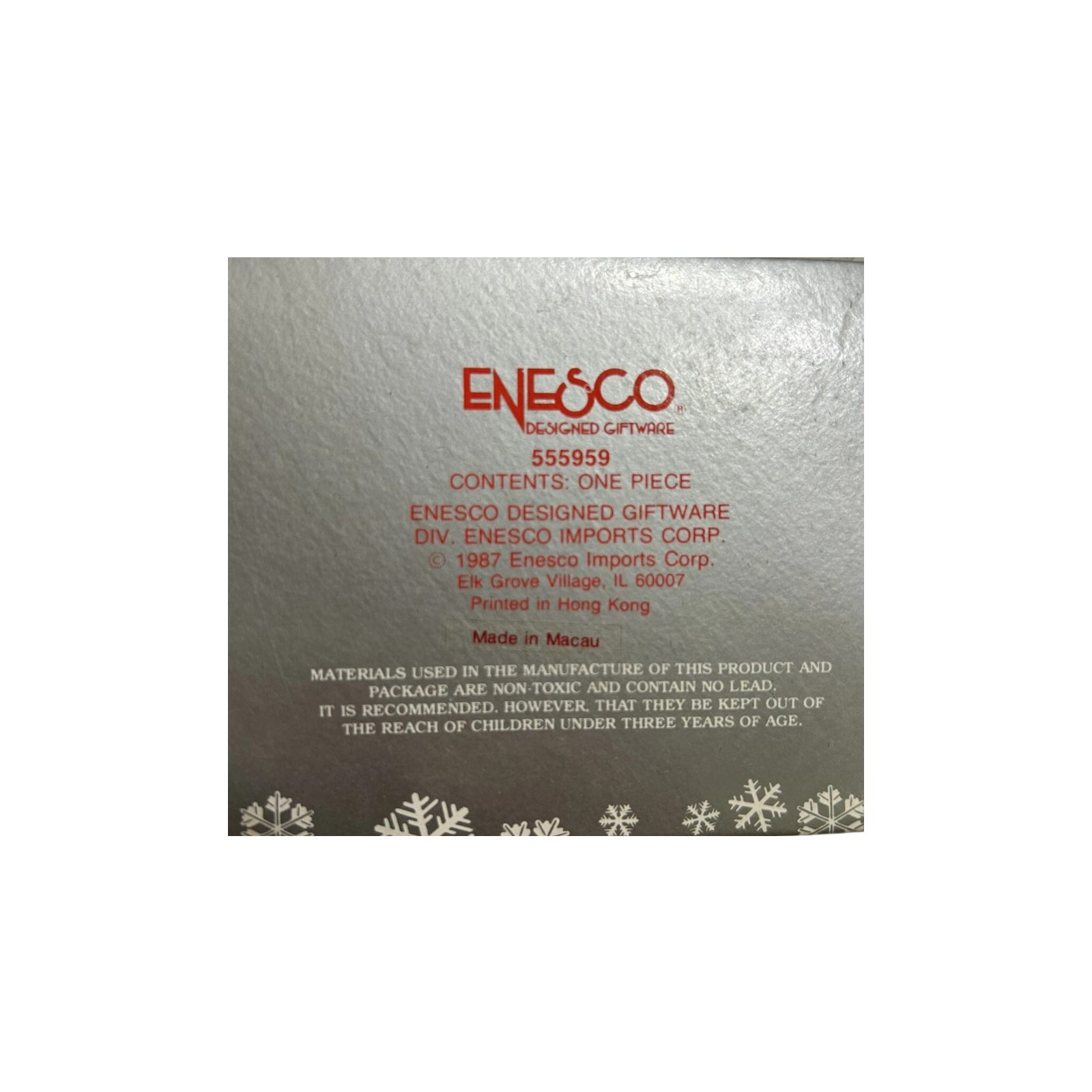 The 1987 Kitty’s Jack-in-the-Box ornament from Enesco is an adorable and whimsical holiday collectible that captures the playful innocence of Christmas. It features a cute gray kitten popping out of a colorful red-and-green jack-in-the-box toy decorated with festive stars and holly accents. The kitten’s bright expression and tilted head give it irresistible charm, while the toy box adds a nostalgic touch reminiscent of classic Christmas playthings. This hand-painted porcelain ornament was part of Enesco’s 1987 holiday collection and typically comes with its original Enesco box and gold hanging cord. No cords, batteries, or lights are required—it’s a simple, delightful display piece.