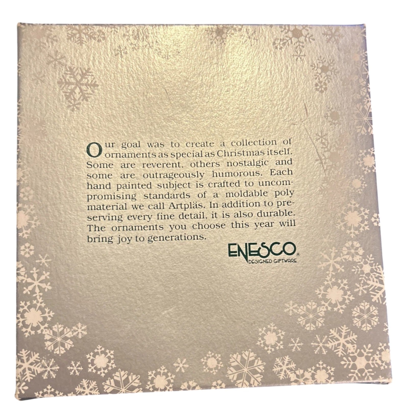 Relive the magic of Christmas past with the 1987 Enesco “Past Joys” ornament. This elegant collectible features a beautifully sculpted rocking horse, adorned with intricate detailing, a festive saddle, and golden accents that evoke timeless holiday nostalgia. Hand-painted with Enesco’s signature craftsmanship, this piece captures the grace and tradition of old-fashioned Christmas celebrations. A perfect addition for collectors of vintage Enesco or classic toy-themed ornaments, “Past Joys” brings warmth, artistry, and sentimental charm to any holiday display.