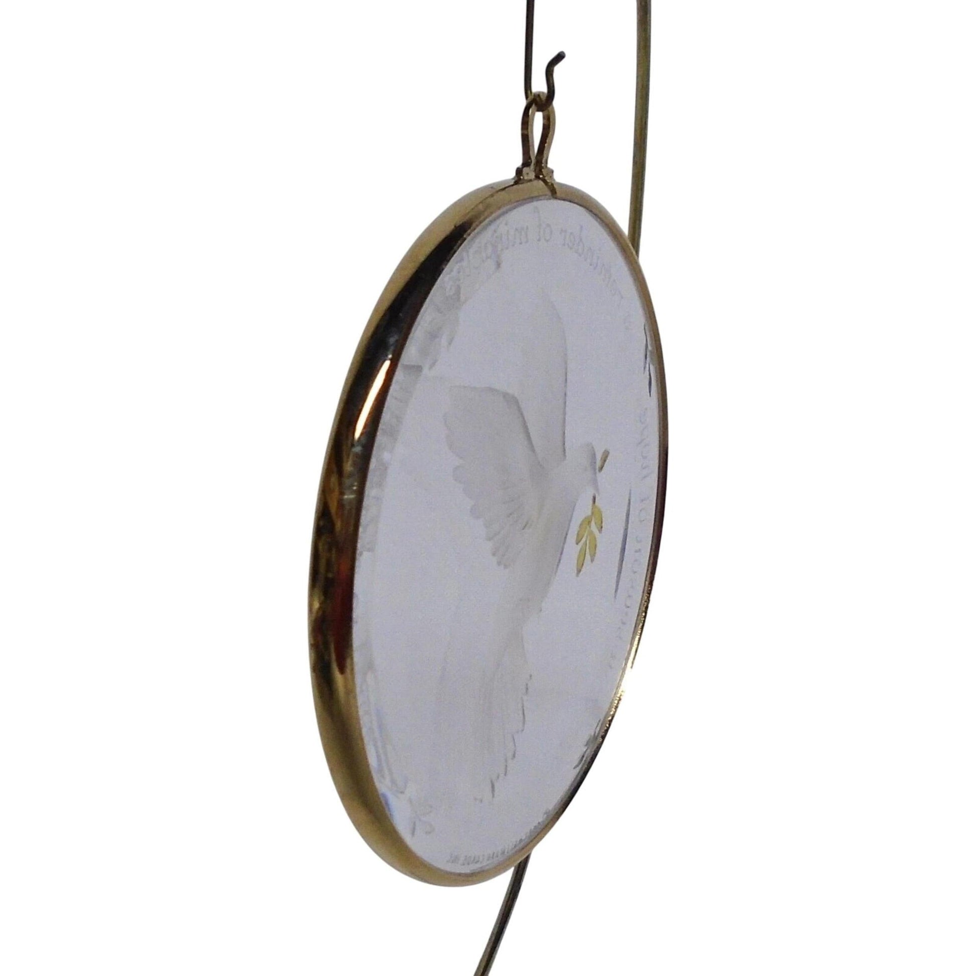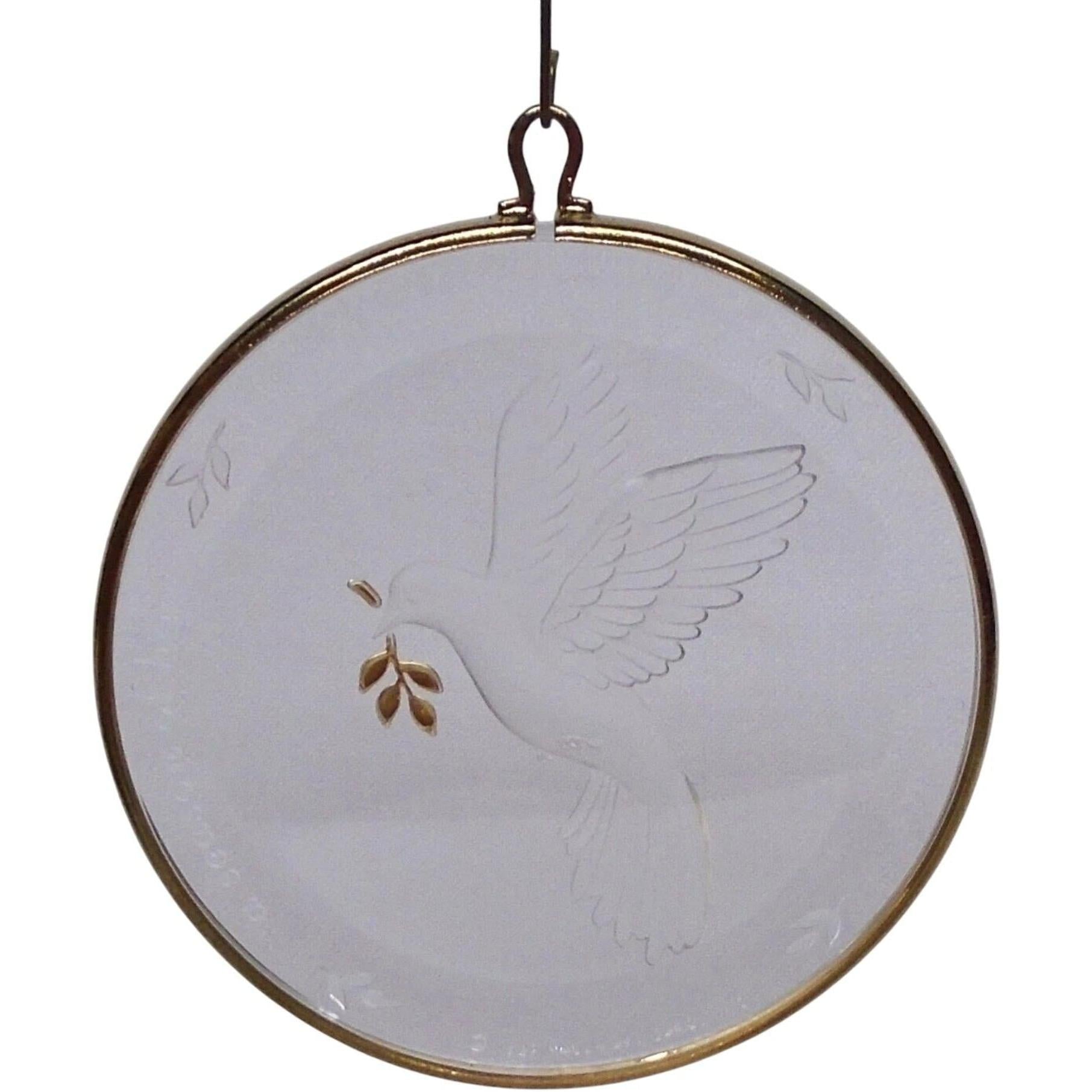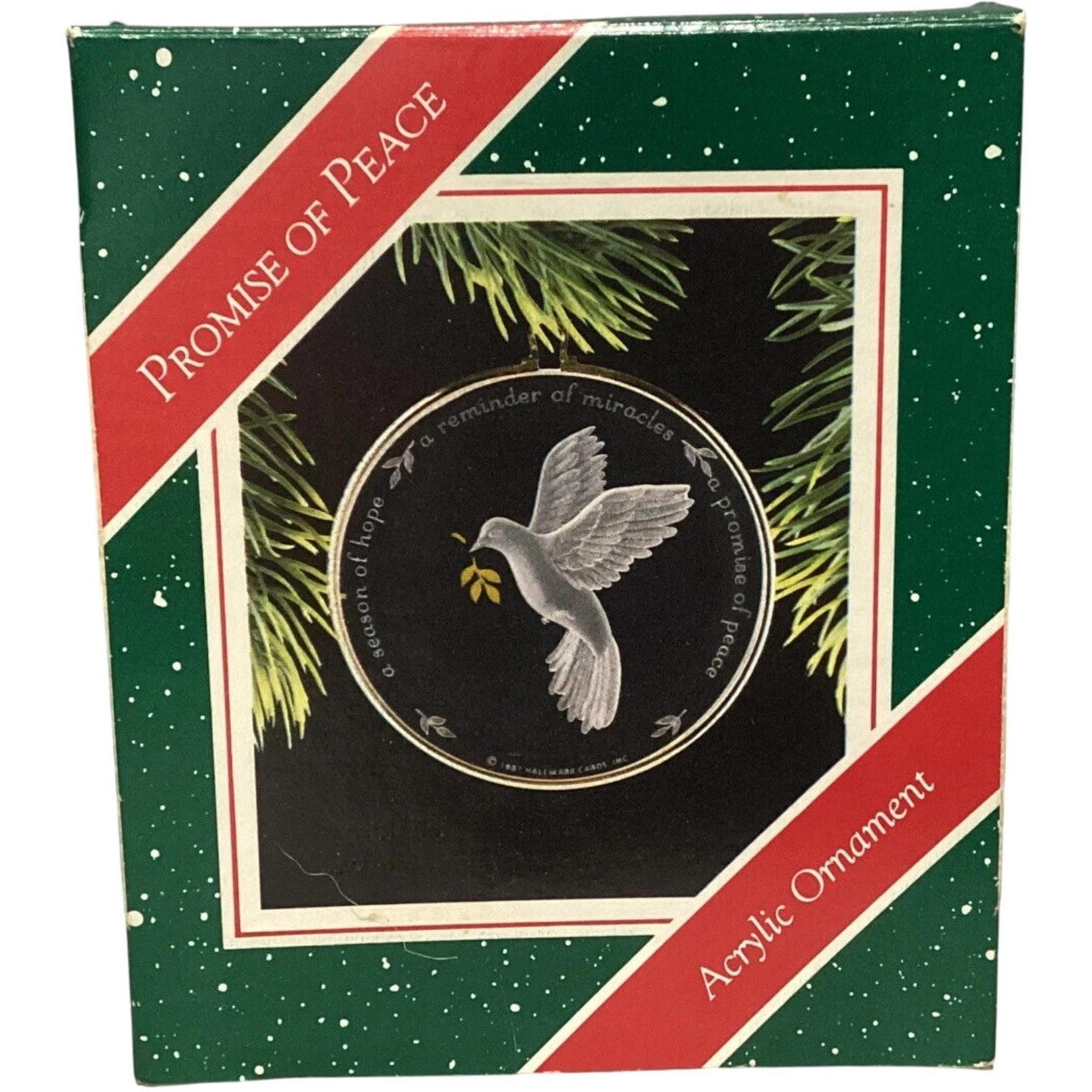 Embodying a timeless message of hope, the 1987 Promise of Peace ornament features a gracefully etched dove clutching an olive branch—framed in a delicate acrylic disc with a gold-tone rim. Encircled by the inscription “A Season of Hope, a Reminder of Miracles, a Promise of Peace,” this ornament arrives mint in its original Keepsake box (when available) and requires no power to display. Its minimalist design and meaningful sentiment make it a heartfelt addition to any tree or collection.