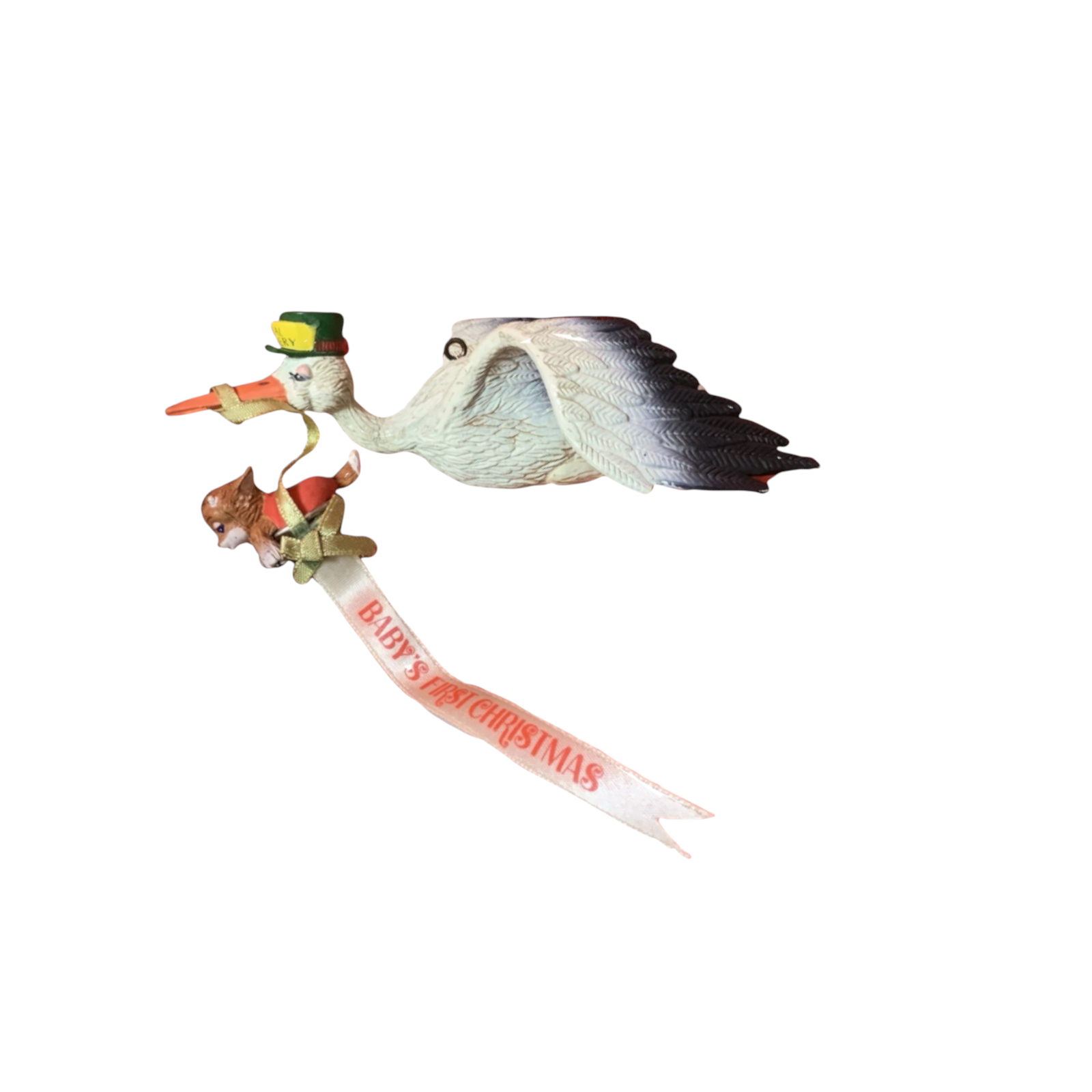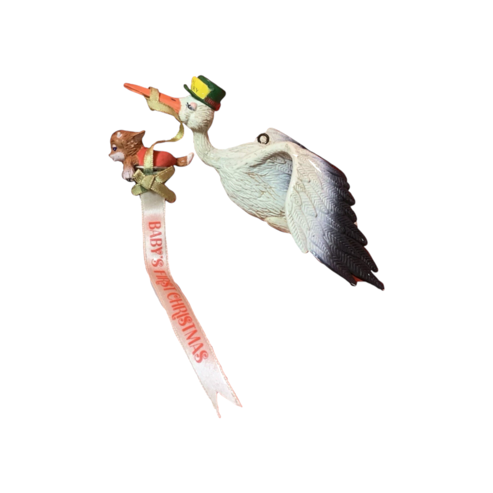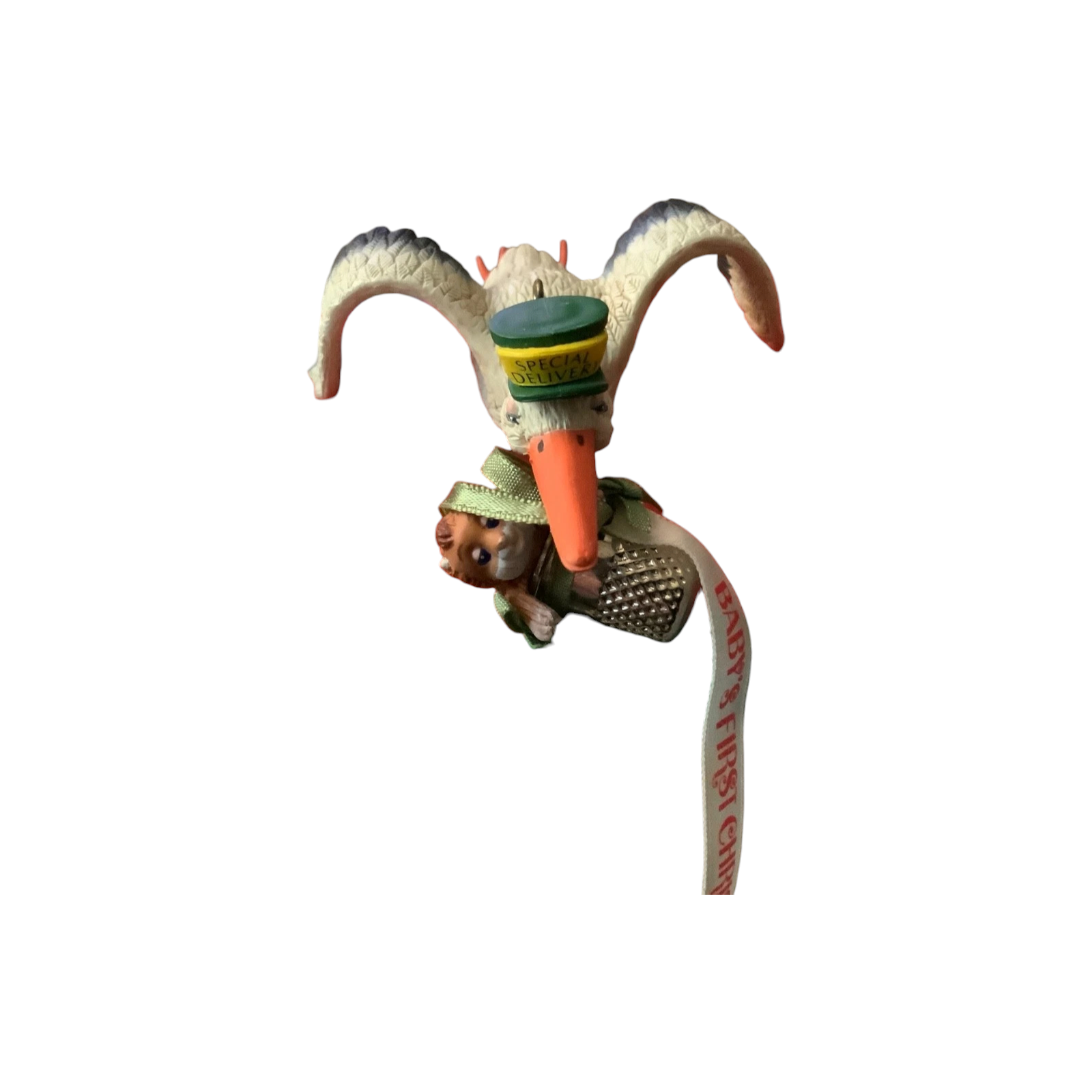 Celebrate life’s sweetest milestone with the 1988 Enesco “Baby’s First Christmas” ornament. This heartwarming collectible features an adorable baby bird nestled in a festive stocking, symbolizing love, joy, and new beginnings. Hand-painted in soft pastel tones with Enesco’s signature craftsmanship, it beautifully captures the tenderness and innocence of a child’s first holiday season. A timeless keepsake for parents and collectors alike, this ornament is a perfect reminder of the wonder and warmth of that very first Christmas.