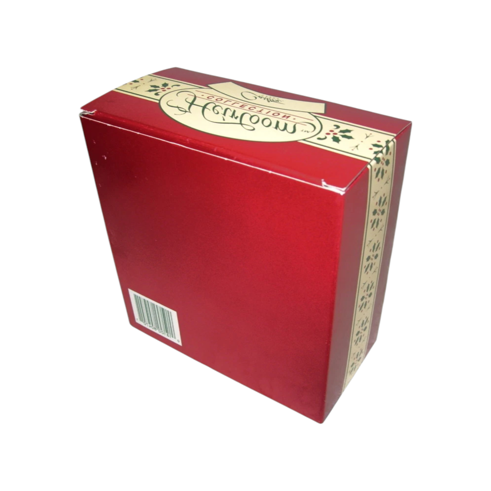 The 1988 Favorite Things ornament by Carlton Cards is an endearing collectible featuring a cheerful teddy bear surrounded by all the simple joys of Christmas. The bear, wearing a festive red bow, sits contentedly among a pile of holiday treasures — a candy cane, a toy drum, a wrapped present, and a tiny Christmas tree. The bear’s sweet smile and gentle pose perfectly capture the warm, nostalgic spirit of Carlton’s late-1980s ornament designs. Crafted from hand-painted resin, the piece has charming color contrast and textured detail, giving it a cozy, storybook feel. The ornament typically includes its original Carlton Cards box and gold hanging cord. No power, cords, or lights are required.