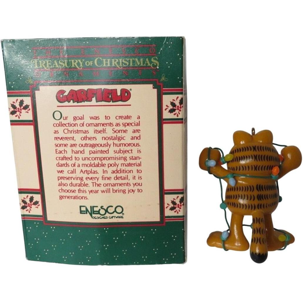 Add a dose of holiday humor with the 1988 Enesco “Garfield – Lighten Up!” ornament featuring everyone’s favorite lasagna-loving cat. This fun collectible shows Garfield tangled in a string of Christmas lights, wearing his classic grumpy expression as he attempts to “help” with decorating. Hand-painted in bright, festive colors with Enesco’s signature attention to detail, this piece perfectly captures Garfield’s mischievous charm and sarcastic spirit. A must-have for Garfield fans and vintage Enesco collectors, it brings laughter and nostalgia to any holiday display.