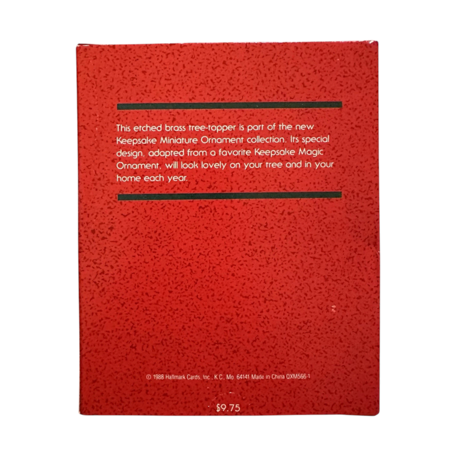 The 1988 Heavenly Glow tree topper is one of Hallmark’s most elegant “Magic” ornaments, designed to crown the Christmas tree with a radiant angelic presence. This beautifully sculpted piece features a serene angel dressed in a flowing white and gold gown, holding a golden trumpet. When connected to a standard miniature light string, the angel softly glows from within, illuminating her robe and creating a warm, heavenly light effect. Crafted with intricate hand-painted details and translucent materials, it perfectly captures Hallmark’s late-1980s artistry and craftsmanship. The topper typically includes its original Hallmark box and light-string connector instructions.