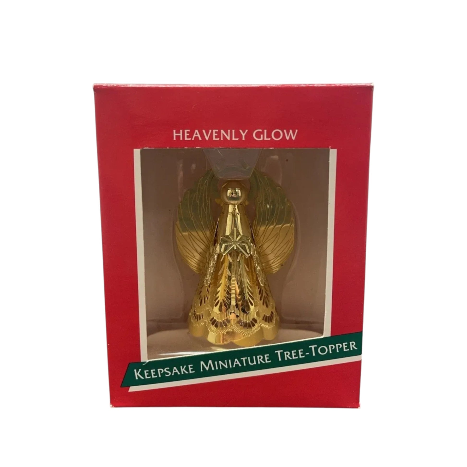 Add a radiant classic to your holiday collection with the 1988 Hallmark Heavenly Glow Miniature Tree-Topper, a treasured piece from Hallmark’s Keepsake Miniature Ornament lineup. This elegant miniature features an etched brass angel with ornate cut-out details that beautifully catch the light, making it perfect for accenting a small tree or tabletop display. When new, this collectible typically includes the original Hallmark box and inner protective holder for safe storage year after year. Designed as a traditional ornamental accent, it requires no batteries, cords, or light strings — simply place atop your miniature tree or display it as a shimmering vintage collectible.