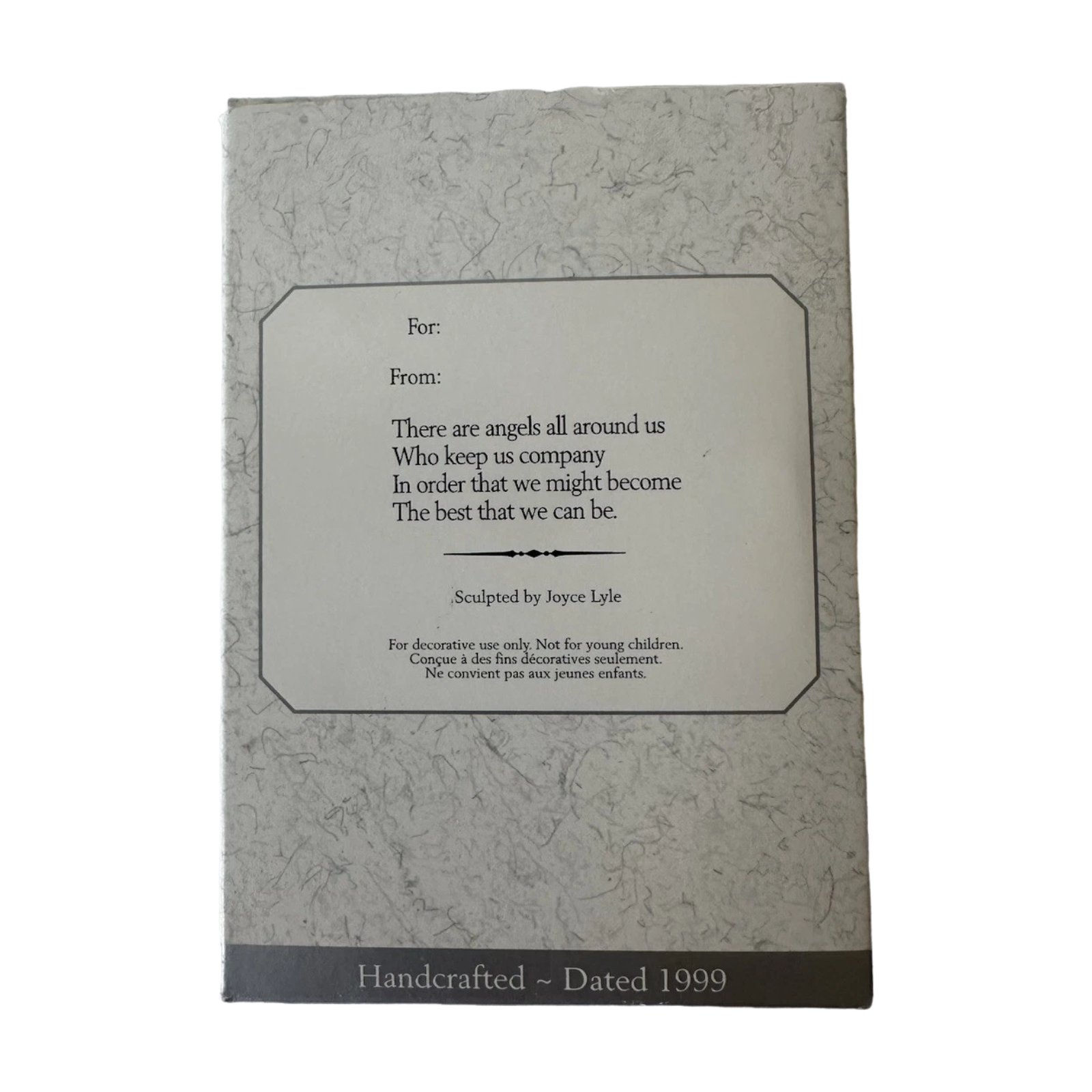 This elegant 1988 Inspirational Angel (Inspirational Angel) ornament captures a serene angel with flowing teal gown and lavender sash, holding a white dove of peace and standing in graceful posture. Part of Hallmark’s first Mary’s Angels series introduced in 1988, it typically comes with the original red and green collector box (with series branding), hang loop included. There’s no motion, sound, or light—no batteries or cords required—making it a purely symbolic keepsake.