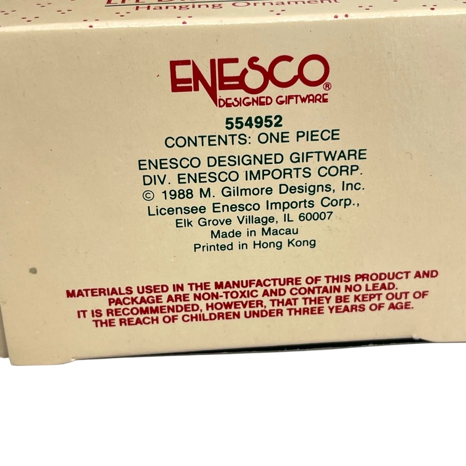 Bring a touch of vintage holiday charm to your décor with this 1988 collectible from Enesco: the Li’l Drummer Bear. This adorable figurine features a cheerful teddy bear dressed in festive red and green attire, joyfully playing a small drum. A classic example of Enesco’s beloved Christmas craftsmanship, this piece captures the warmth and nostalgia of the season. The ornament comes in its original Enesco box and is ready for display or gifting. No batteries, cords, or lights are required—just display and enjoy.