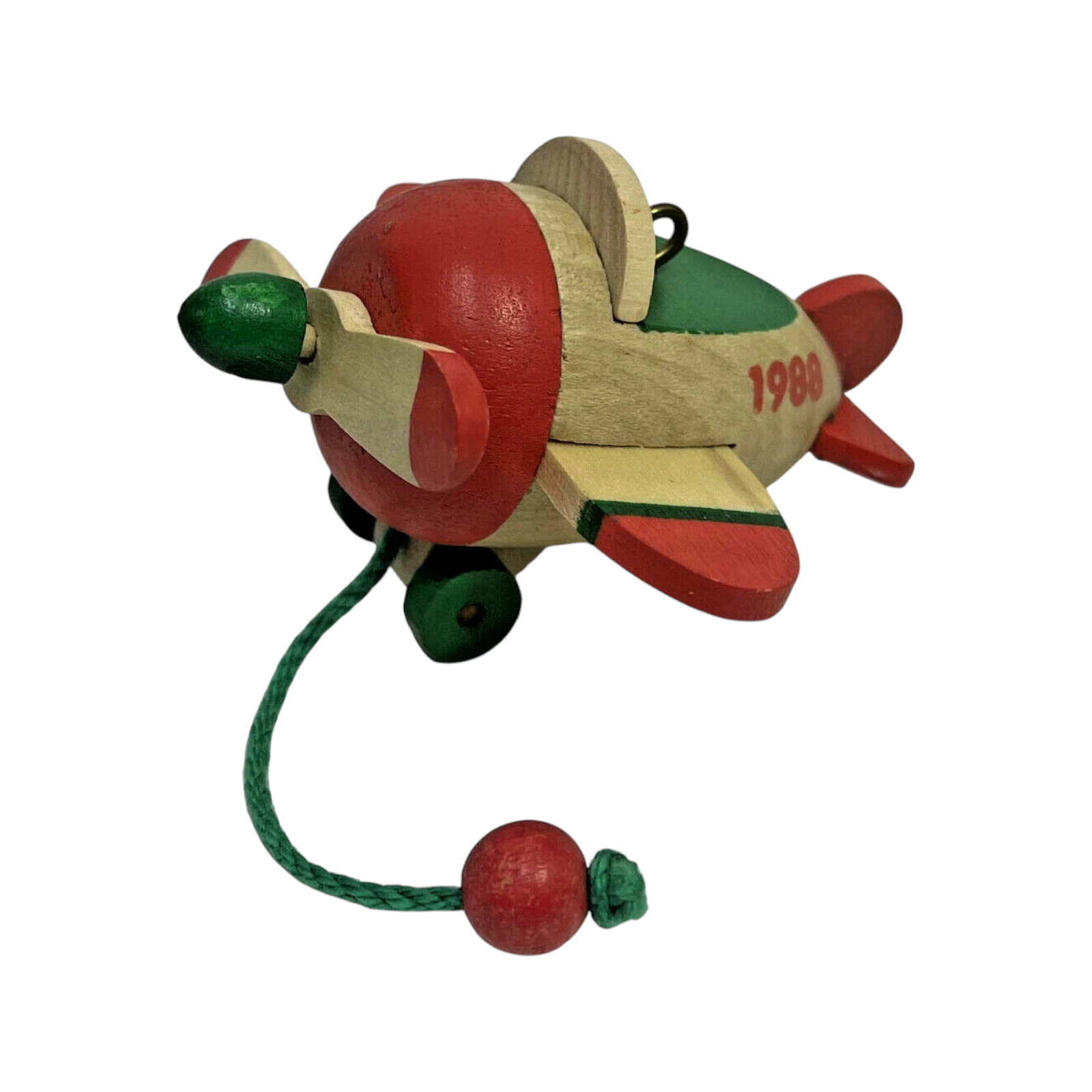 This charming 1989 edition from the Hallmark Keepsake collection celebrates a nostalgic toy theme, featuring a vintage-style wooden airplane with spinning propeller and moveable wheels. The ornament evokes childhood memories of classic playthings, rendered in painted wood tones and designed to hang on a tree or be displayed as a sentimental vintage décor piece. It’s ideal for collectors focused on toy/vehicle themes, wooden ornaments, or late-’80s Hallmark releases.