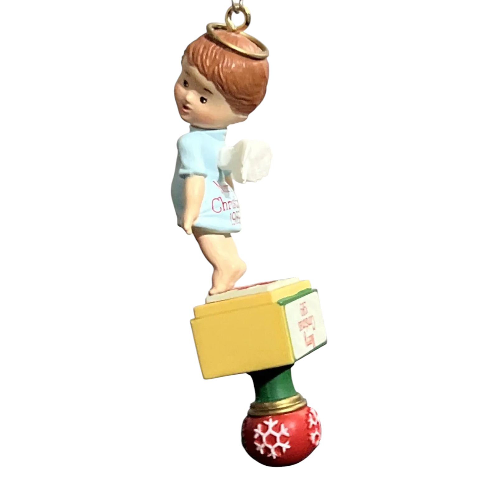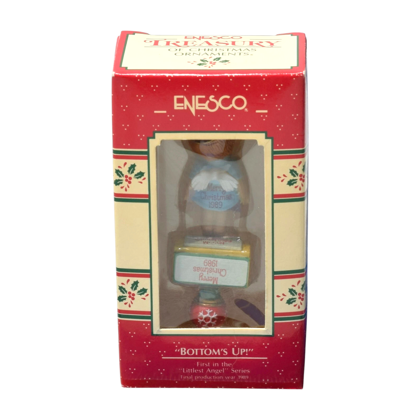 Add a touch of heavenly humor to your holiday with the 1989 Enesco “Bottom’s Up!” ornament — the first issue in the charming “Littlest Angel” series. This delightful collectible features an adorable baby angel doing a playful handstand, wings fluttering and halo slightly askew. Hand-painted in soft pastel tones with Enesco’s signature detail, it captures innocence, joy, and a touch of mischief. A cherished favorite among collectors, this ornament embodies the lighthearted spirit and tender warmth that make the season shine.