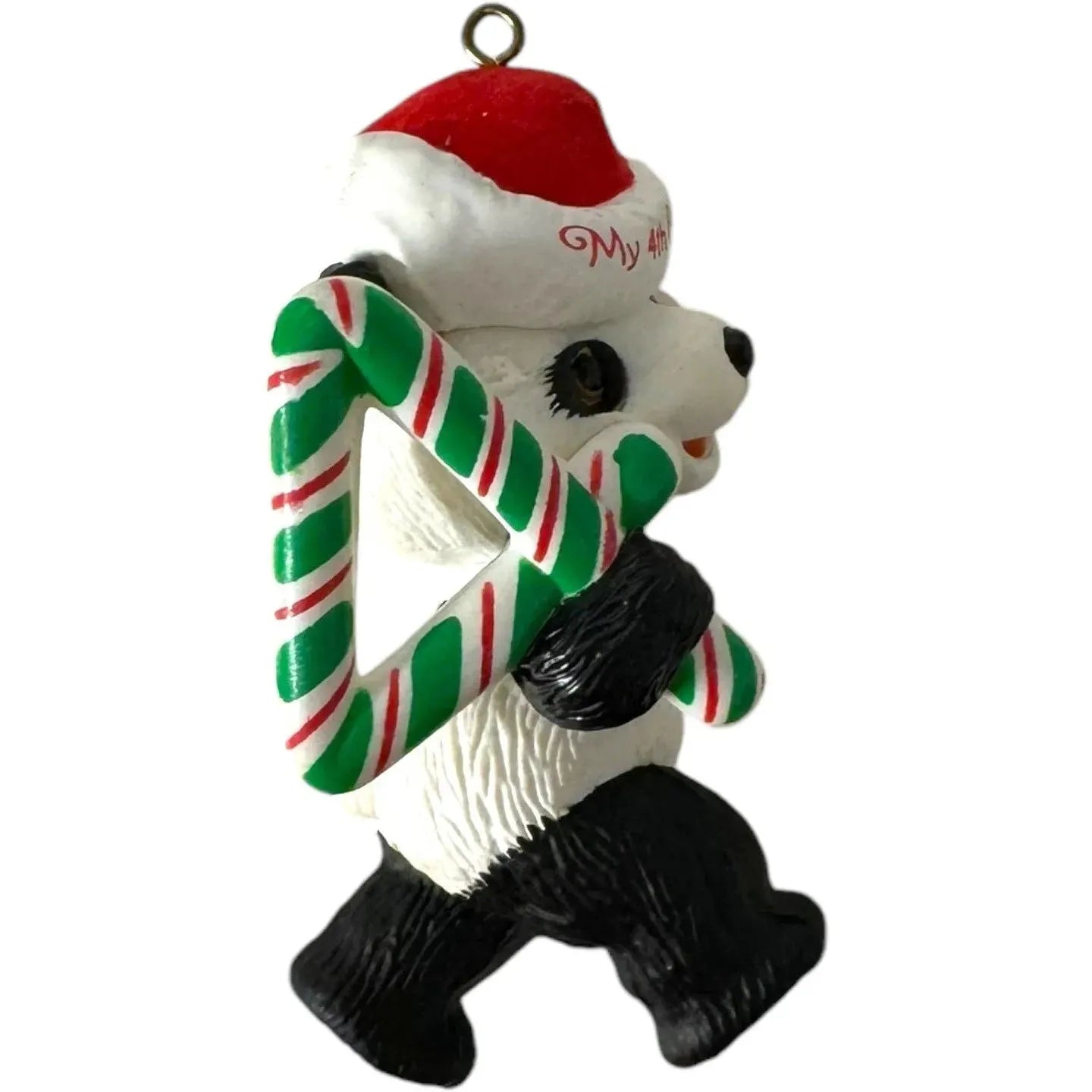 Celebrate a special milestone with the 1989 Child’s Fourth Christmas (Child’s Age Collection) ornament. This sweet design features a playful panda bear wearing a Santa hat labeled “My 4th Christmas ’89”, holding a candy‑cane striped number “4.” Crafted in 1989 by artist John “Collin” Francis, it’s part of Hallmark’s beloved Child’s Age series. The ornament comes in its original collector’s box with tag. Requires No Power—just hang and enjoy the nostalgic charm.