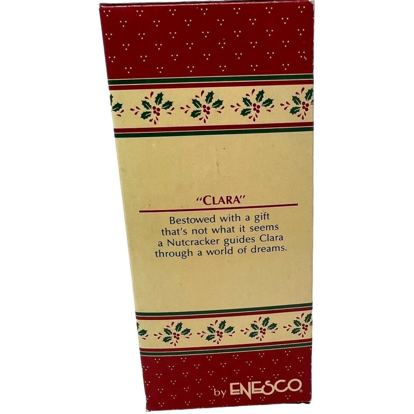 Celebrate the magic of the holiday season with the 1989 Clara ornament, the very first release in the cherished Nutcracker Suite Series by Enesco. This elegant design captures young Clara in her flowing nightgown, holding her beloved Nutcracker Prince. Richly detailed and delicately painted, the ornament evokes the timeless charm of the classic ballet. This collectible comes in its original box with hang tag, making it a wonderful addition to your vintage ornament collection. No batteries, cords, or light strings are required for use—ready to display as is.