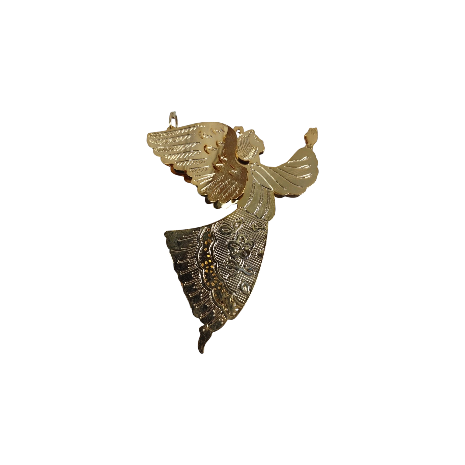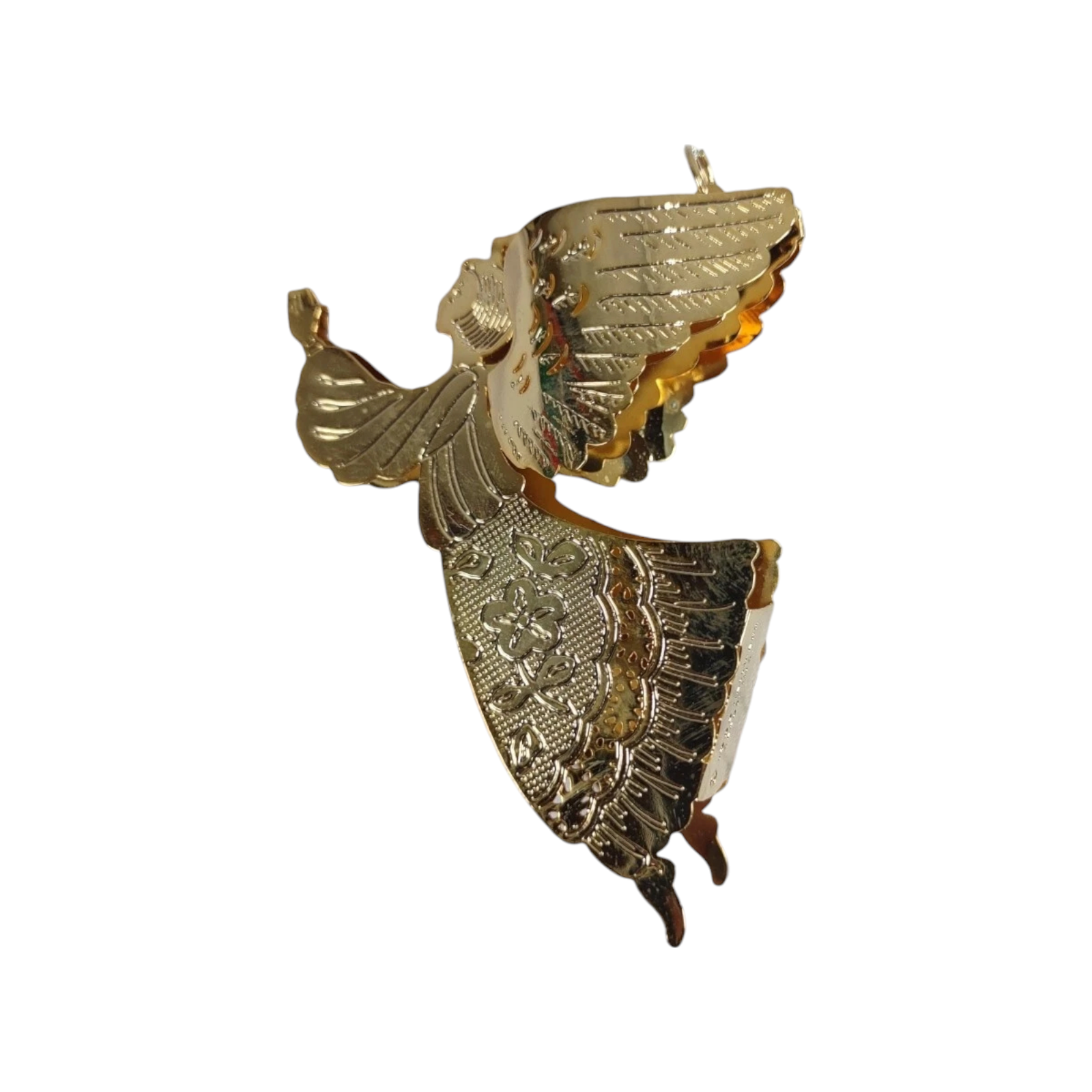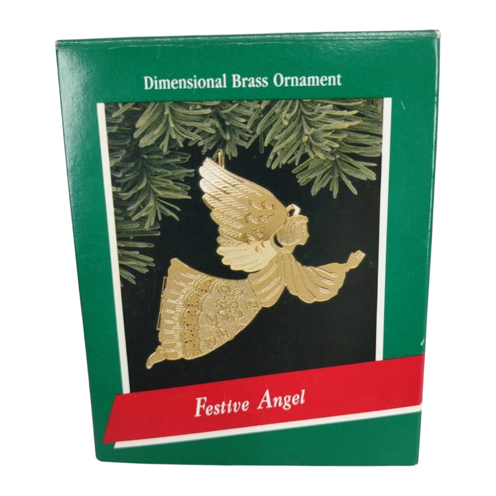 Elevate your holiday décor with the 1989 Festive Angel (Holiday Traditions) ornament. This finely detailed dimensional brass angel dazzles in vintage gold-tone metal, Introduced in 1989, this elegant piece arrives in its original collector’s box—tag may or may not be included. No power is needed—this timeless treasure hangs beautifully on its own.