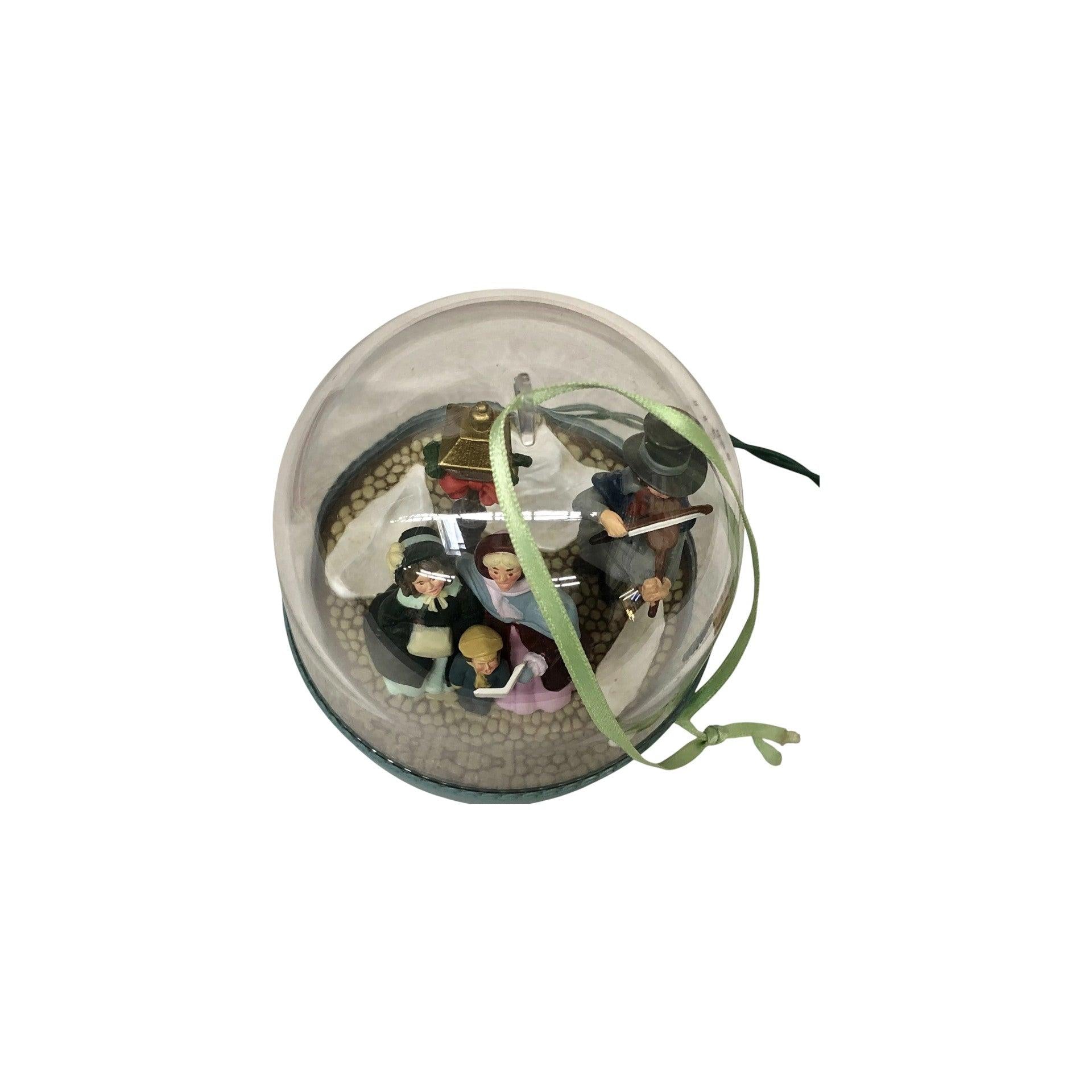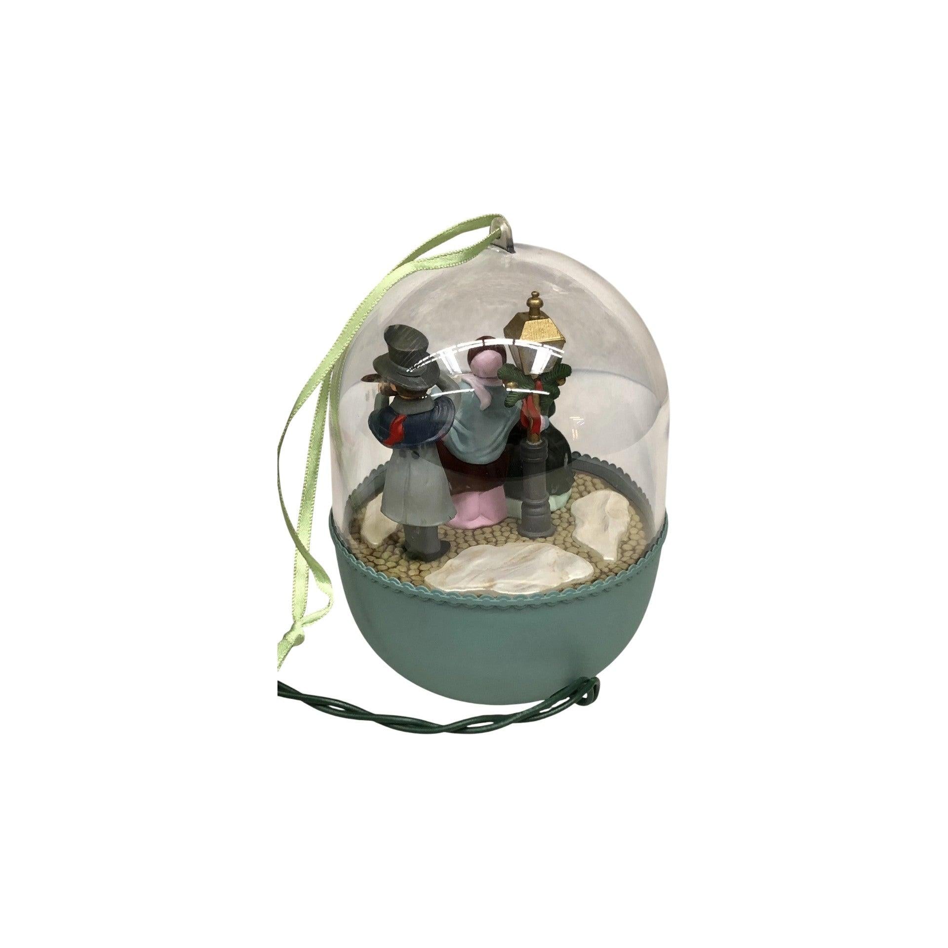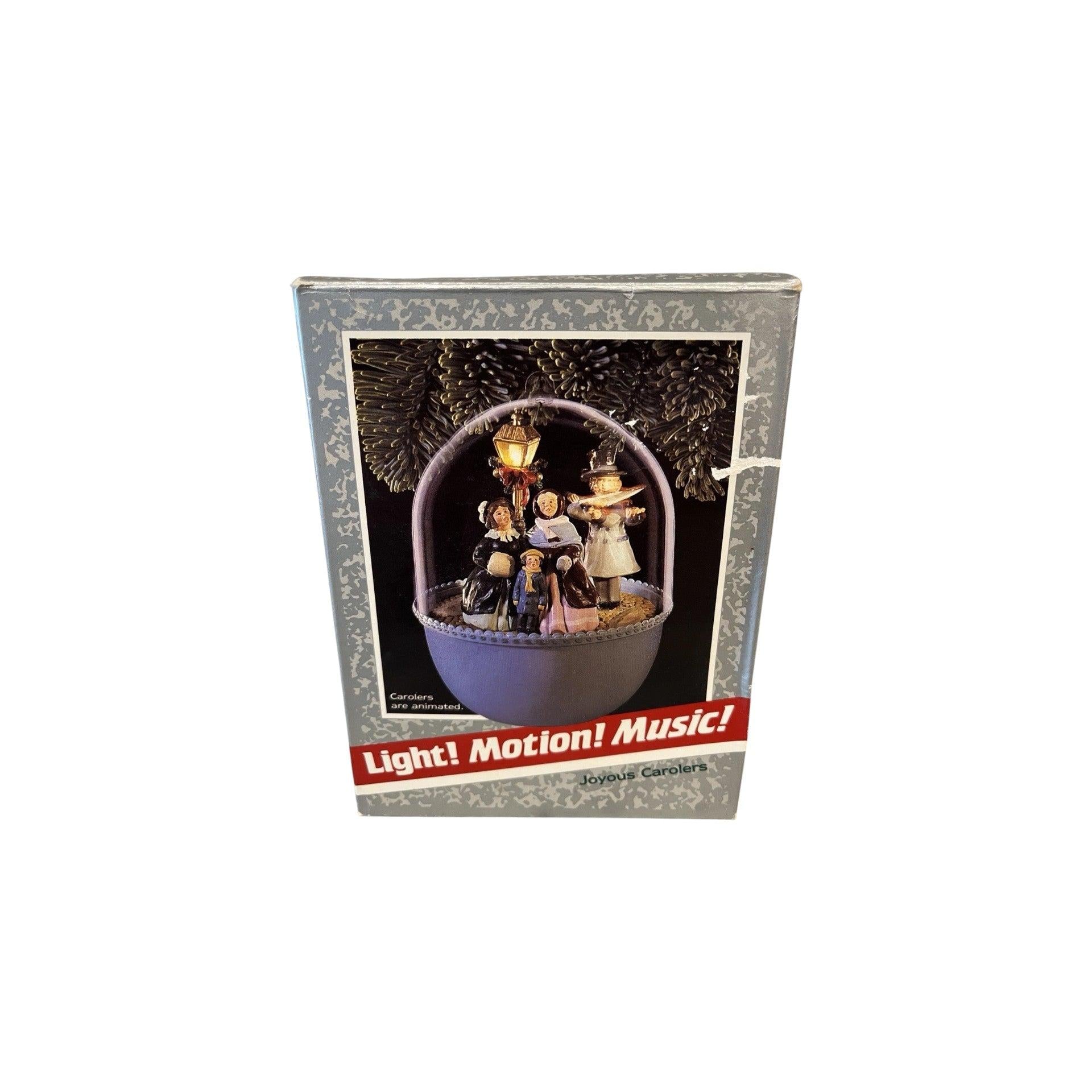 Warm nostalgia meets holiday delight in the 1989 Joyous Carolers ornament, featuring a charming quartet of Victorian-style carolers gathered under a glowing lamp post inside a clear globe. When plugged into a miniature Christmas light string, the scene comes alive with rotating motion, bright illumination, and the beloved tune "We Wish You a Merry Christmas." Included in the package: the ornament in its original box and artist tag. No batteries are needed—it operates through light cord power.