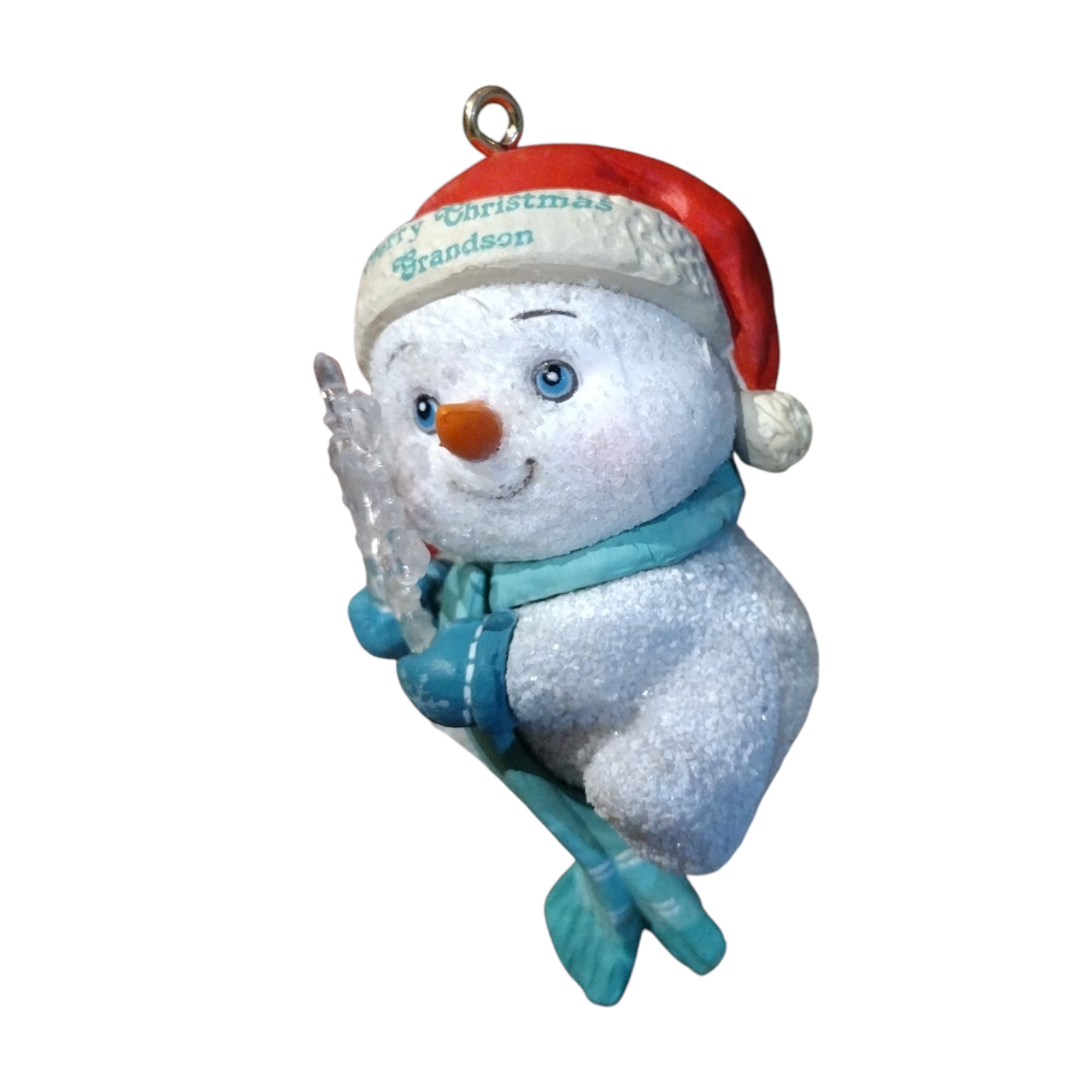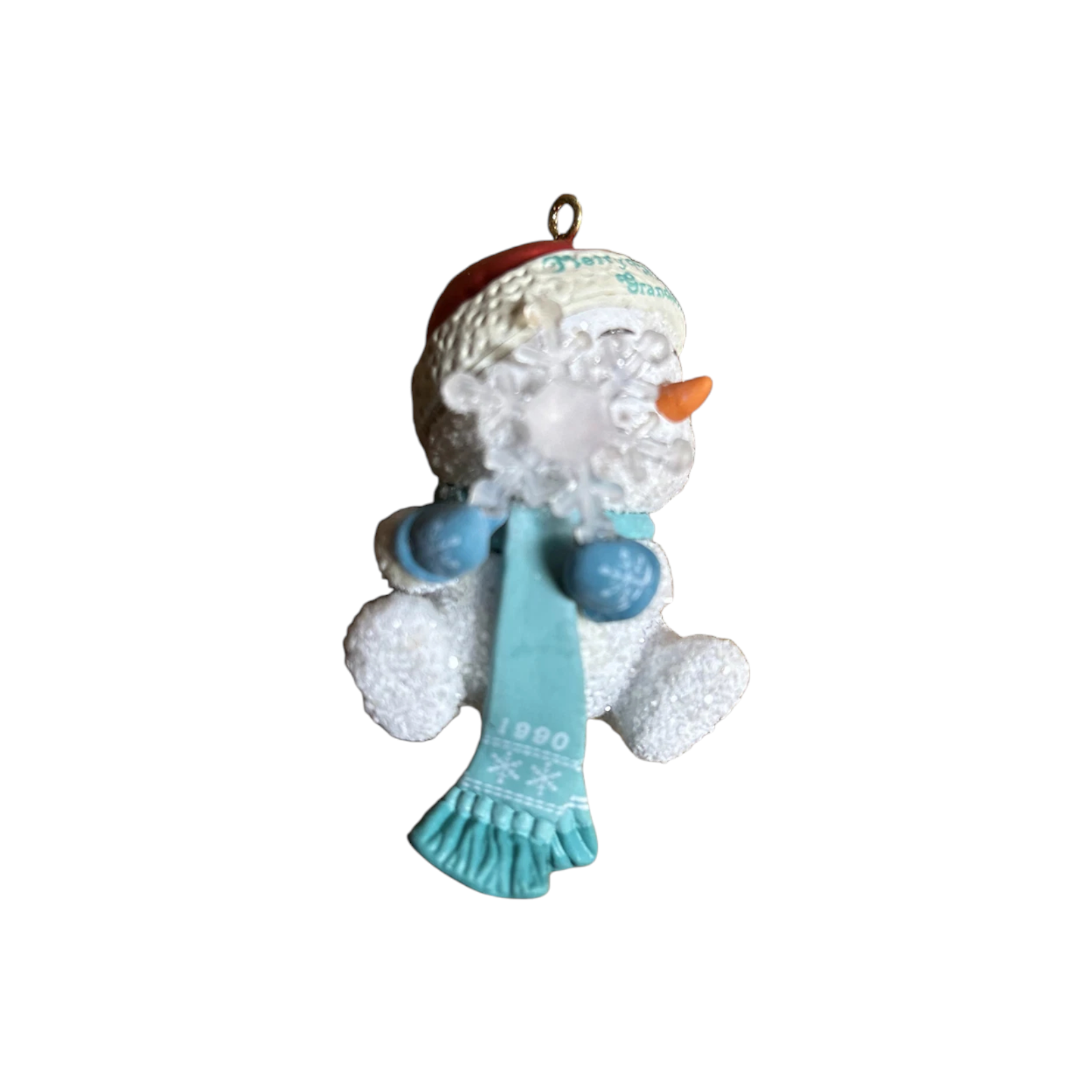 Celebrate a cherished milestone with the 1989 Little Frostee – Grandson (Baby’s First Christmas) ornament from the Heirloom Collection by Carlton Cards. Featuring a sweet snowman figure in pastel winter attire holding a sign that reads “Grandson,” this collectible marks a baby’s first festive season in charming style. The molded resin/plastic construction, hand-painted finish and the clear “1989” date combine to give this piece nostalgia, sentiment and collectible appeal. Whether as a newborn’s keepsake or part of a baby-first-Christmas series, its vintage status and meaningful theme make it a standout addition.