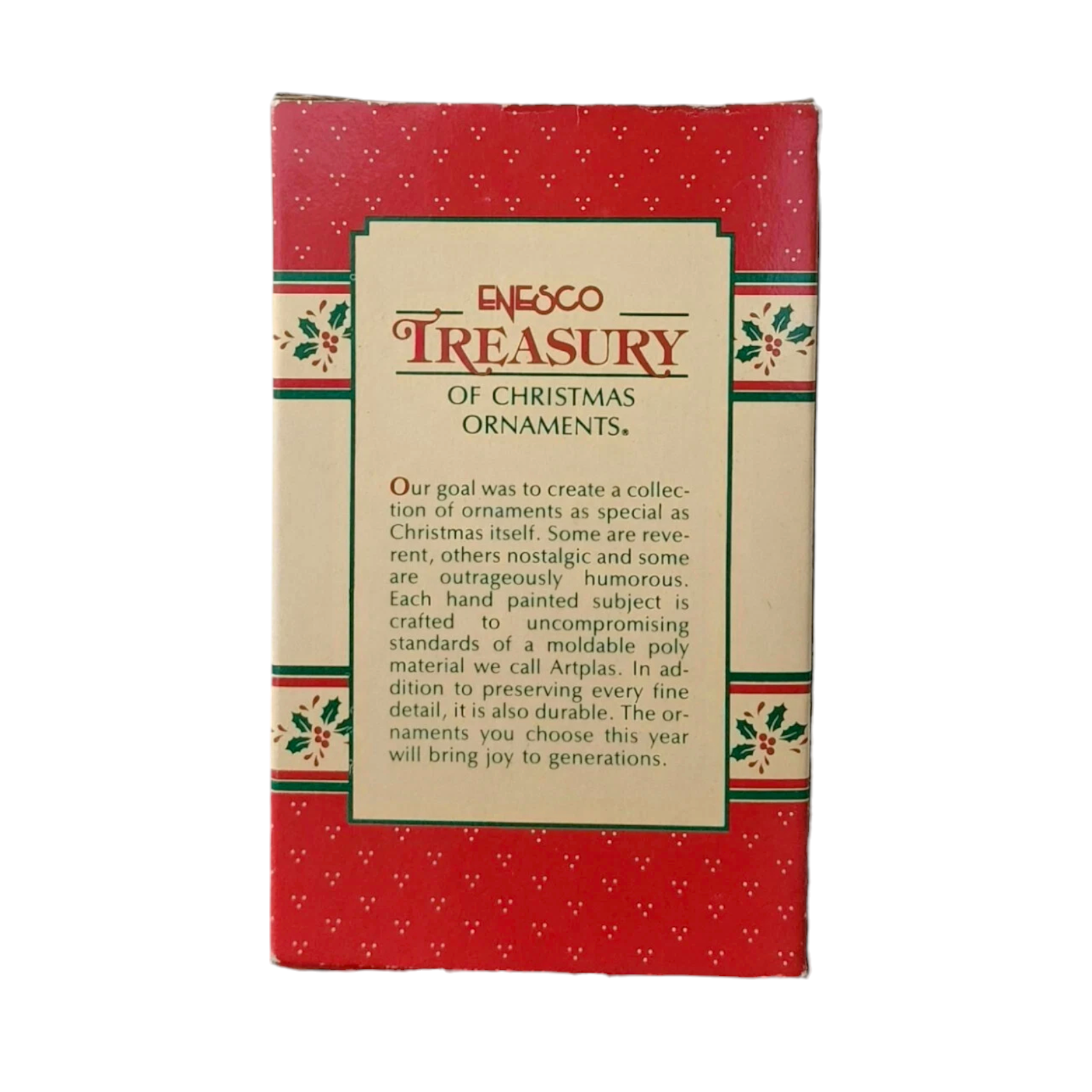 Capture the peaceful spirit of Christmas with the 1989 Enesco “Old Town Church” ornament — the first issue in the beloved “Pine Hollow” series. This beautifully detailed collectible depicts a snow-covered village church adorned with wreaths, glowing windows, and timeless charm. Hand-painted in soft winter hues with Enesco’s renowned craftsmanship, it evokes the serenity of a cozy, candlelit Christmas Eve. A cherished favorite for Enesco collectors and lovers of nostalgic holiday villages, this piece perfectly blends artistry, tradition, and heartwarming beauty.