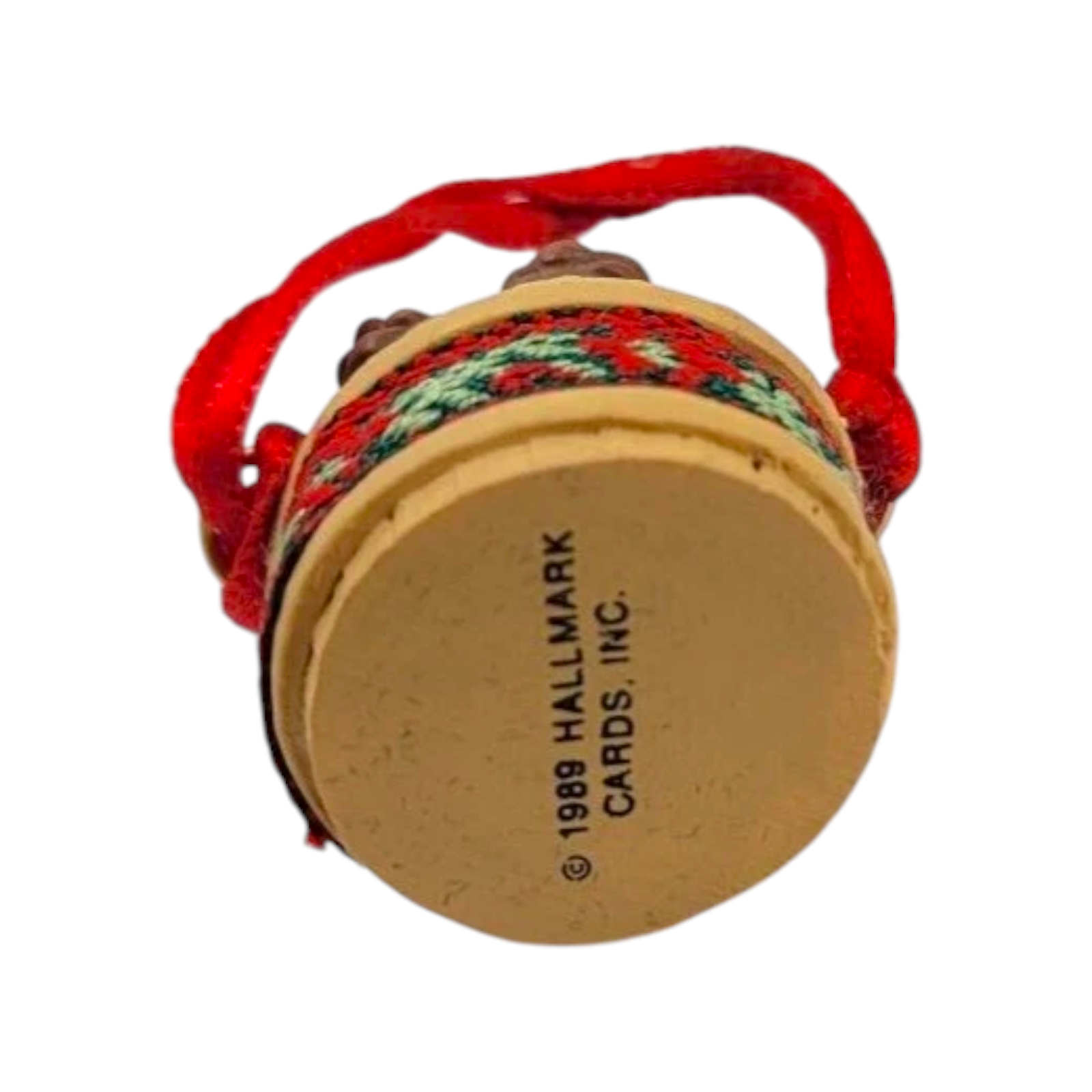 This charming miniature from the 1989 Hallmark Keepsake line (model QXM5734) presents a woodland scene featuring a basket of pinecones nestled beside a curious chipmunk and a squirrel. Designed by artist Dill Rhodus, the piece captures fine natural-detail in a miniature form—ideal for collectors of early “animal” themed ornaments or vintage miniatures. The little basket, textured pinecones, and animal figures evoke rustic holiday charm and make this piece stand out among love-of-nature ornament displays.