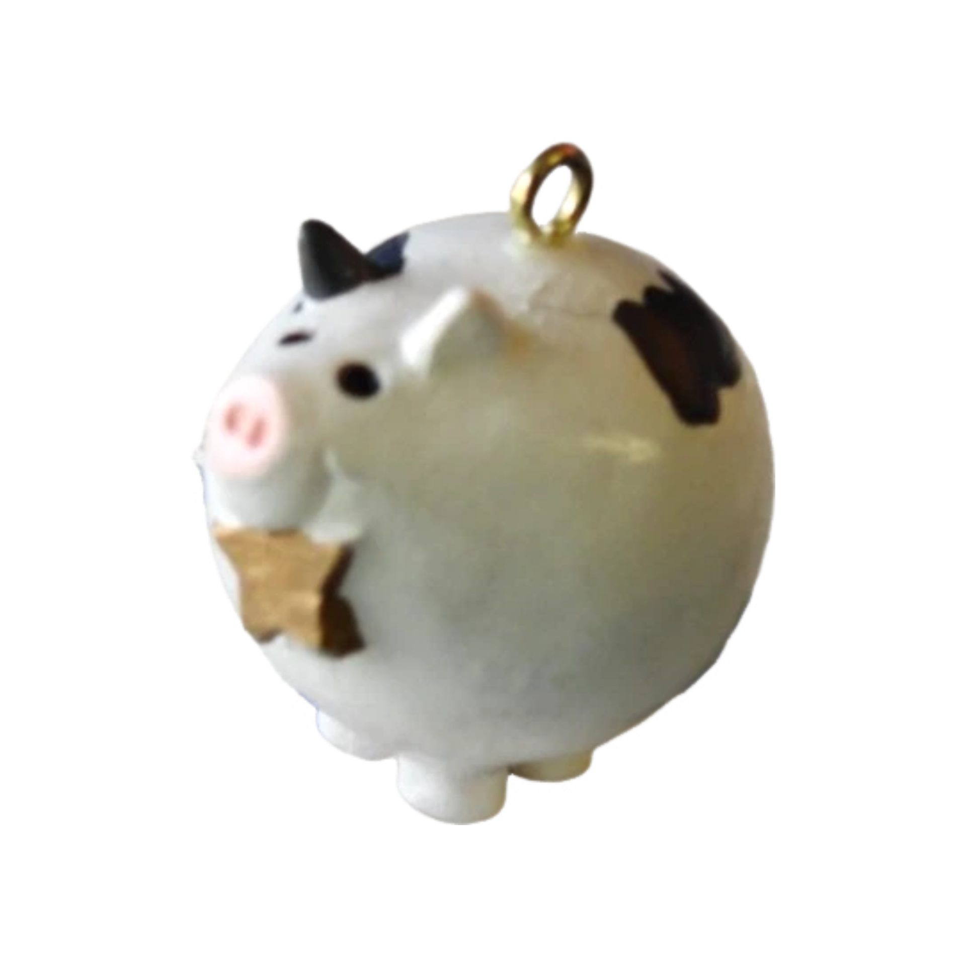 This tiny 1989 ornament features a cute, chubby pig — the Roly-Poly Pig — sculpted in a chunky, rounded style intended for a tabletop Christmas tree, branch display, or as a collectible accent. The pig is molded in plastic, painted with characteristic pig-like coloring, and includes a small hanging loop so it can serve as a tree ornament or a miniature decoration. When new, it came in its original Hallmark box (often red/green vintage packaging). The ornament is purely decorative and does not require any batteries, cords, or lights.