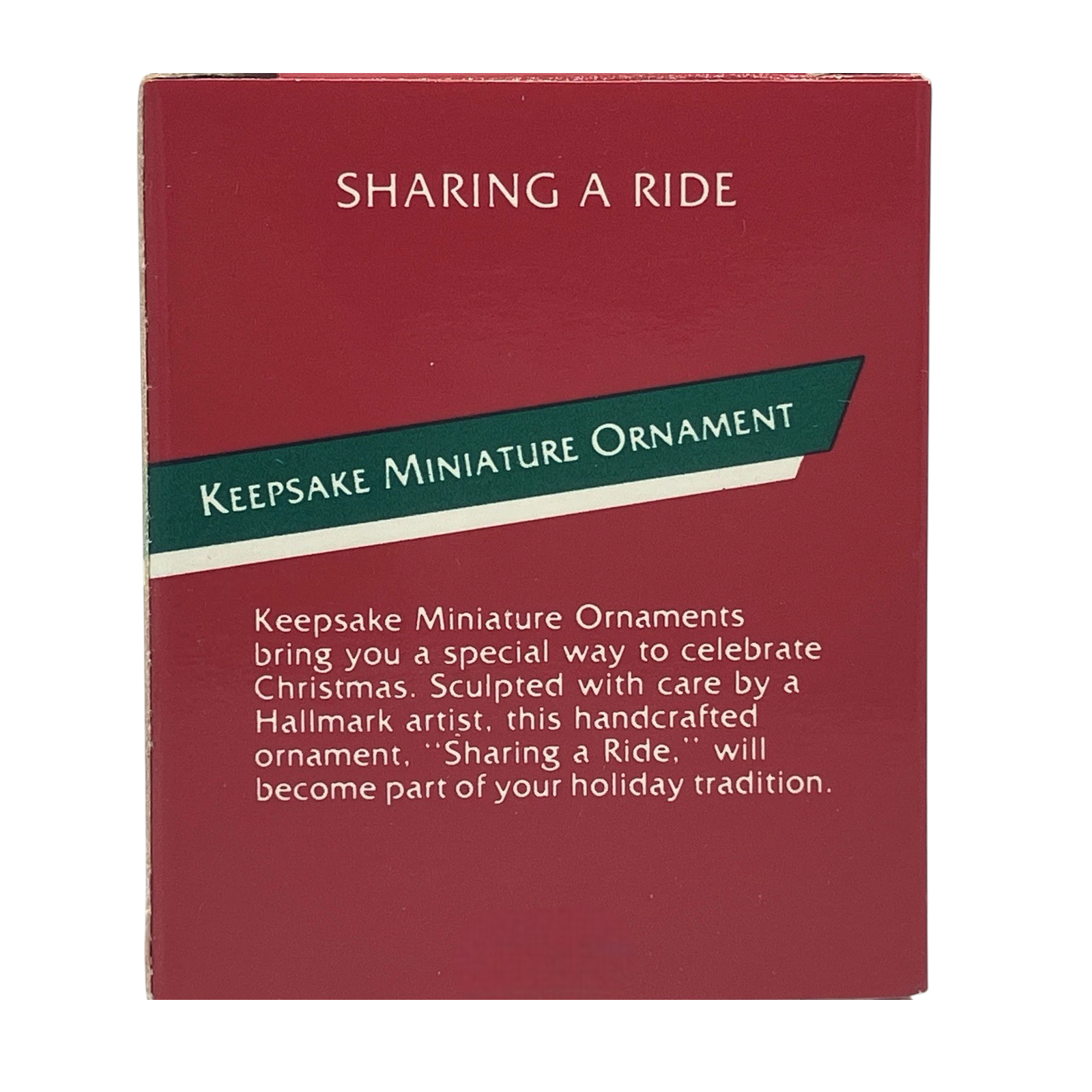 Sweetly nostalgic, the 1989 Sharing A Ride miniature ornament features a cheerful elf seated on a swing holding a teddy bear, perfectly capturing holiday playfulness. Crafted in 1989 and sculpted by artist Peter Dutkin, this petite treasure (~1″ tall) usually includes its original red Keepsake Miniature Ornament box—though tags may or may not be present. No batteries, cords, or light strings are required; it's purely decorative and ideal for feather trees or small displays 📦