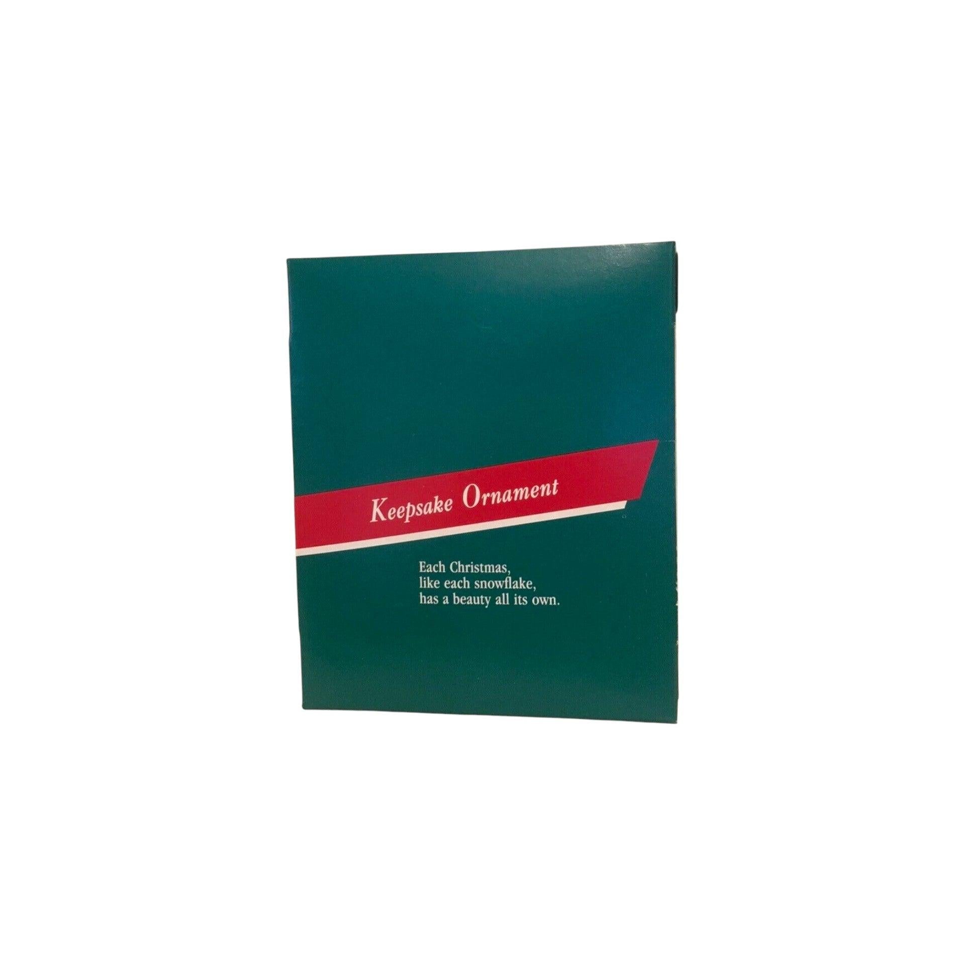 This 1989 Hallmark Keepsake ornament — Sparkling Snowflake — features a classic snowflake motif celebrating the timeless beauty of winter. The ornament is designed with textured details and glitter or shimmer to evoke the sparkle of fresh snow under holiday lights. Its elegant yet simple snowflake design makes it a lovely accent on Christmas trees and in holiday décor. The ornament usually comes packaged with its original Hallmark box and is intended purely for decorative display. It does not include lights, motion, or sound features, so it requires no batteries, cords, or light strings.