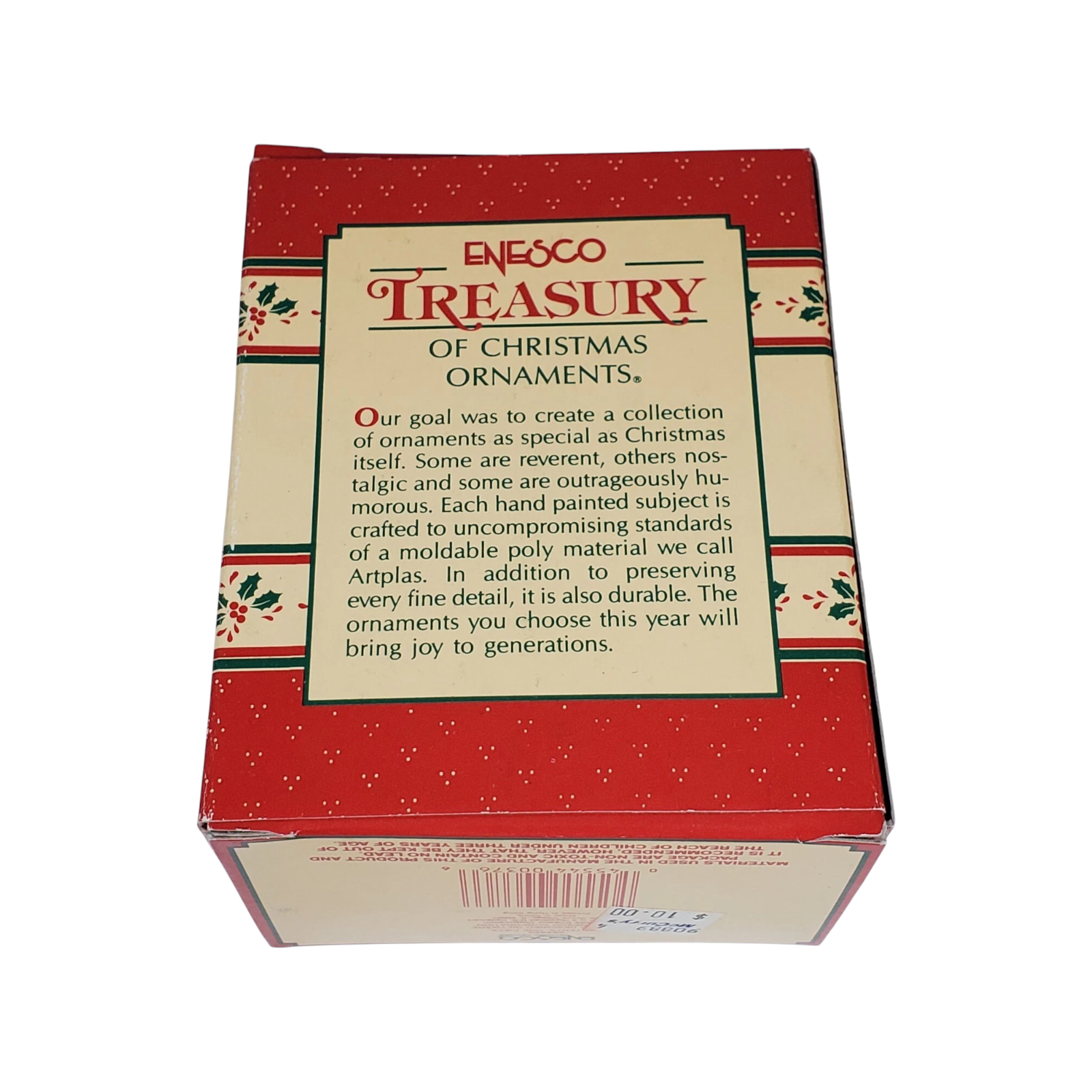 Share the magic of giving with the 1989 Enesco “Spreading Christmas Joy” ornament — a delightful piece featuring an endearing little mouse spreading holiday cheer. Hand-painted with festive colors and exquisite Enesco detail, this collectible captures the warmth and wonder of Christmastime. The tiny mouse, holding a bright red gift and a joyful smile, embodies the spirit of kindness and generosity that defines the season. Produced through 1991, this vintage ornament remains a favorite among Enesco collectors for its charm, quality, and nostalgic appeal.
