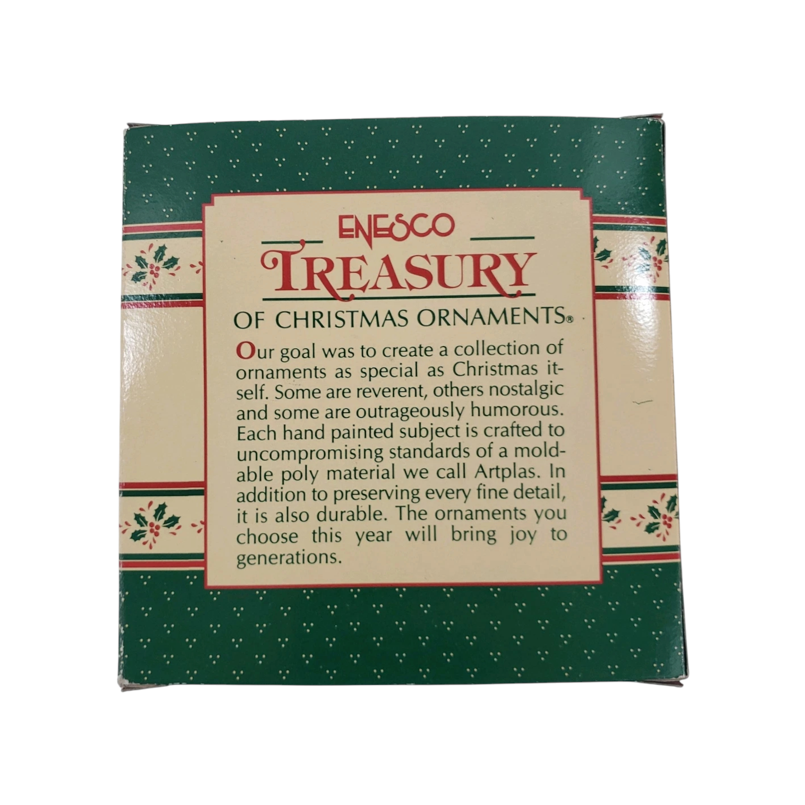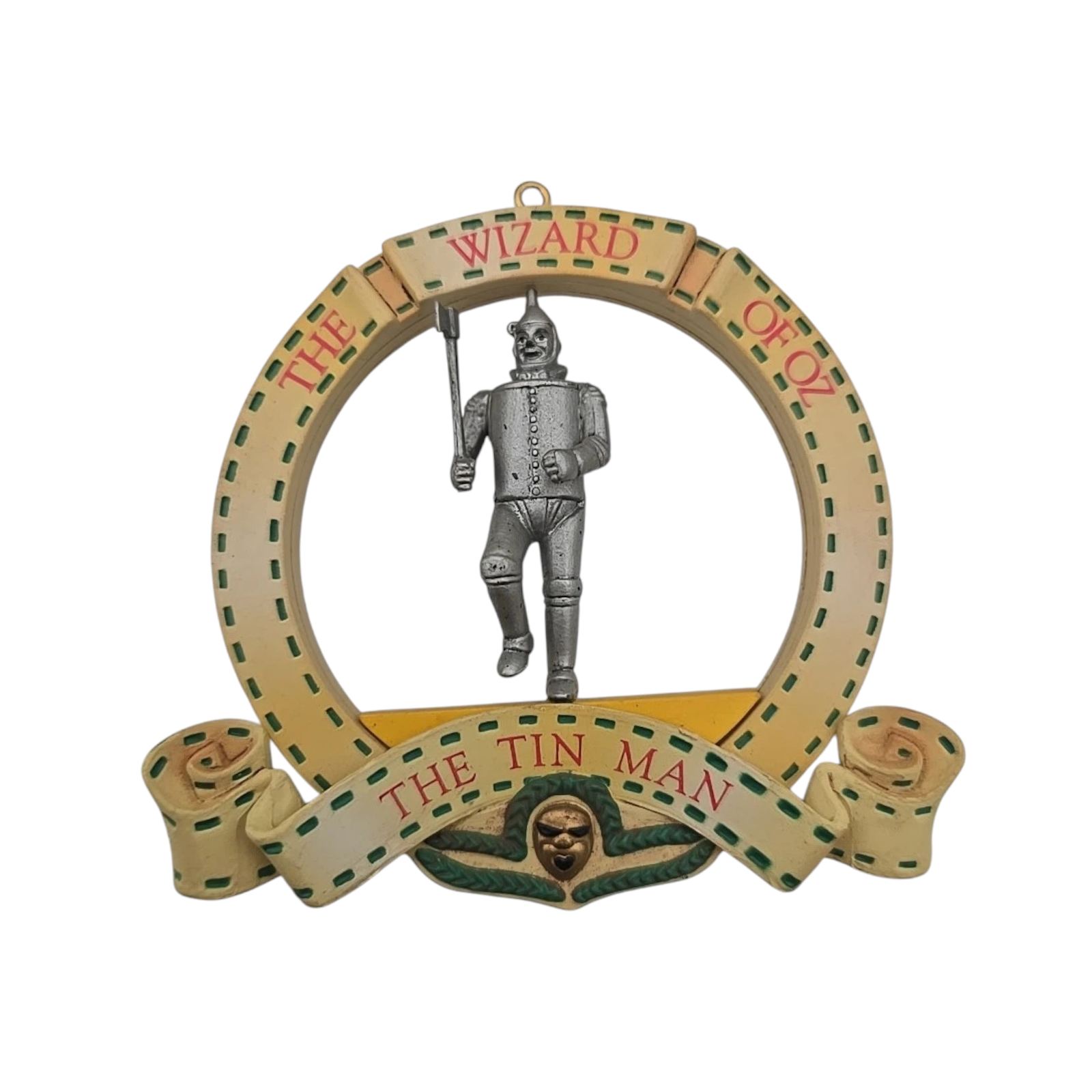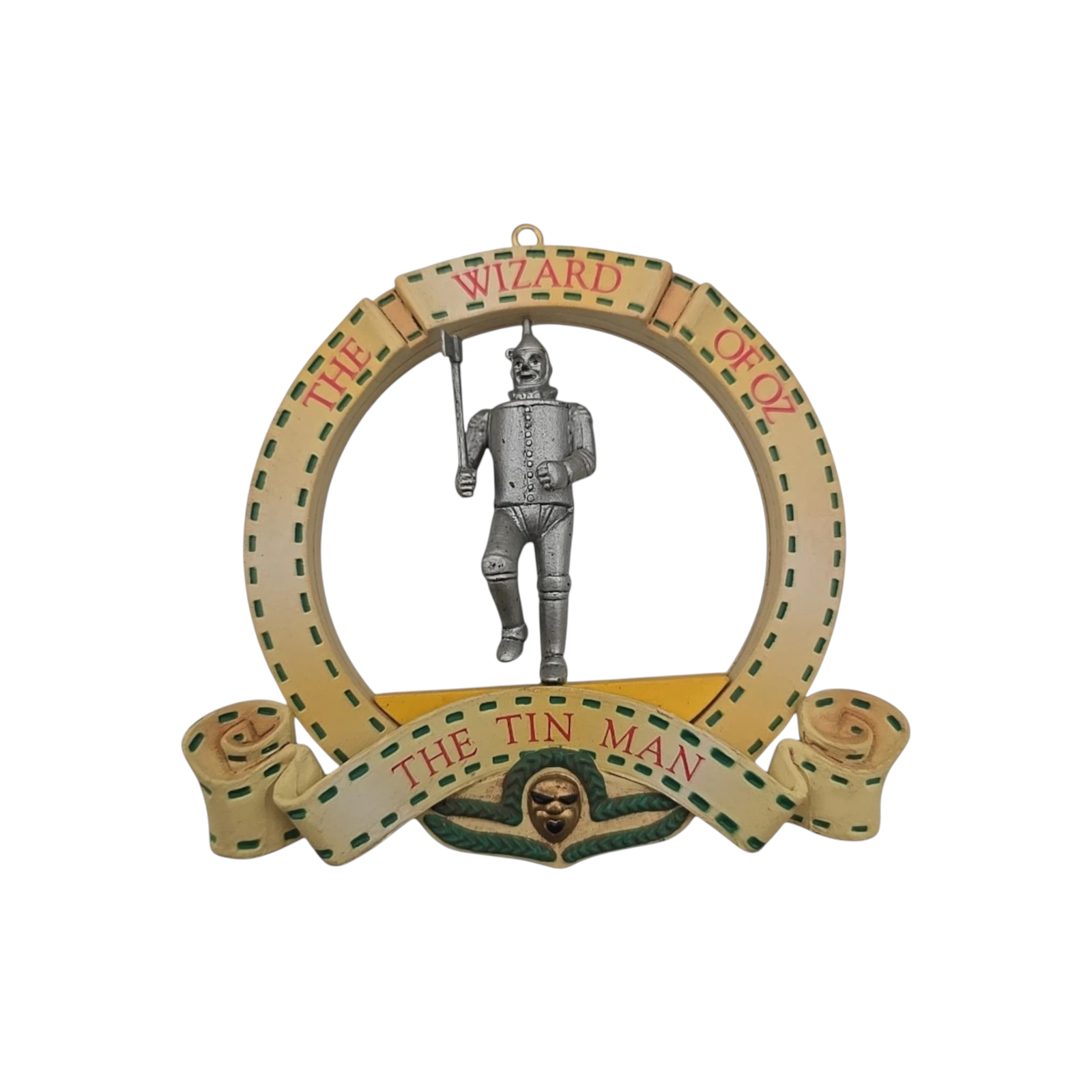 This collectible ornament brings the iconic character from The Wizard of Oz to life with detailed resin/plastic moulding and vibrant hand-painted finish. The Tin Man stands in his metallic attire, heart-shaped medallion included, capturing his classic look and nostalgic film charm. As part of Enesco’s 1989 50th Anniversary Wizard of Oz series, it holds particular appeal to both film-fans and ornament collectors. With its rich storytelling design and holiday presentation, it makes a standout addition to any tree or display.
