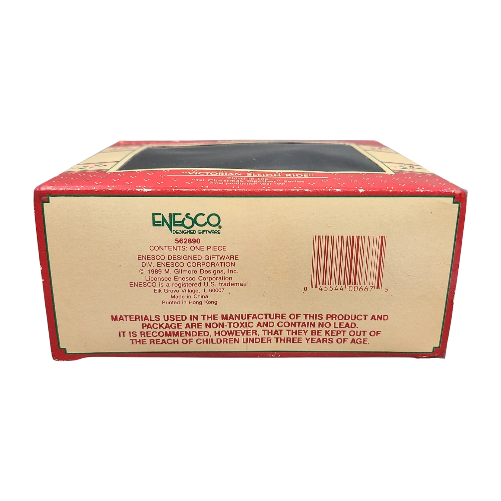 Celebrate romance and nostalgia with the 1989 Enesco “Victorian Sleigh Ride” ornament — the third issue in the enchanting “1st Christmas Together” series. This elegant collectible features a loving couple bundled in Victorian attire, enjoying a horse-drawn sleigh ride through the snow. Hand-painted in soft pastel hues with intricate detailing, it captures Enesco’s timeless artistry and the warmth of togetherness. A cherished keepsake for newlyweds, couples, and vintage Enesco fans, this ornament beautifully symbolizes love, unity, and holiday joy.