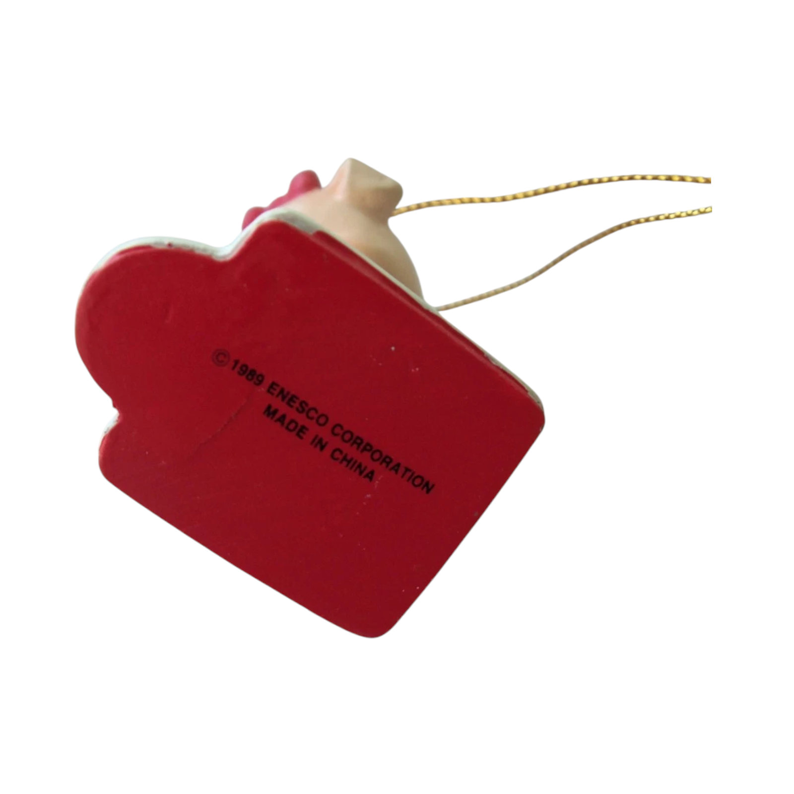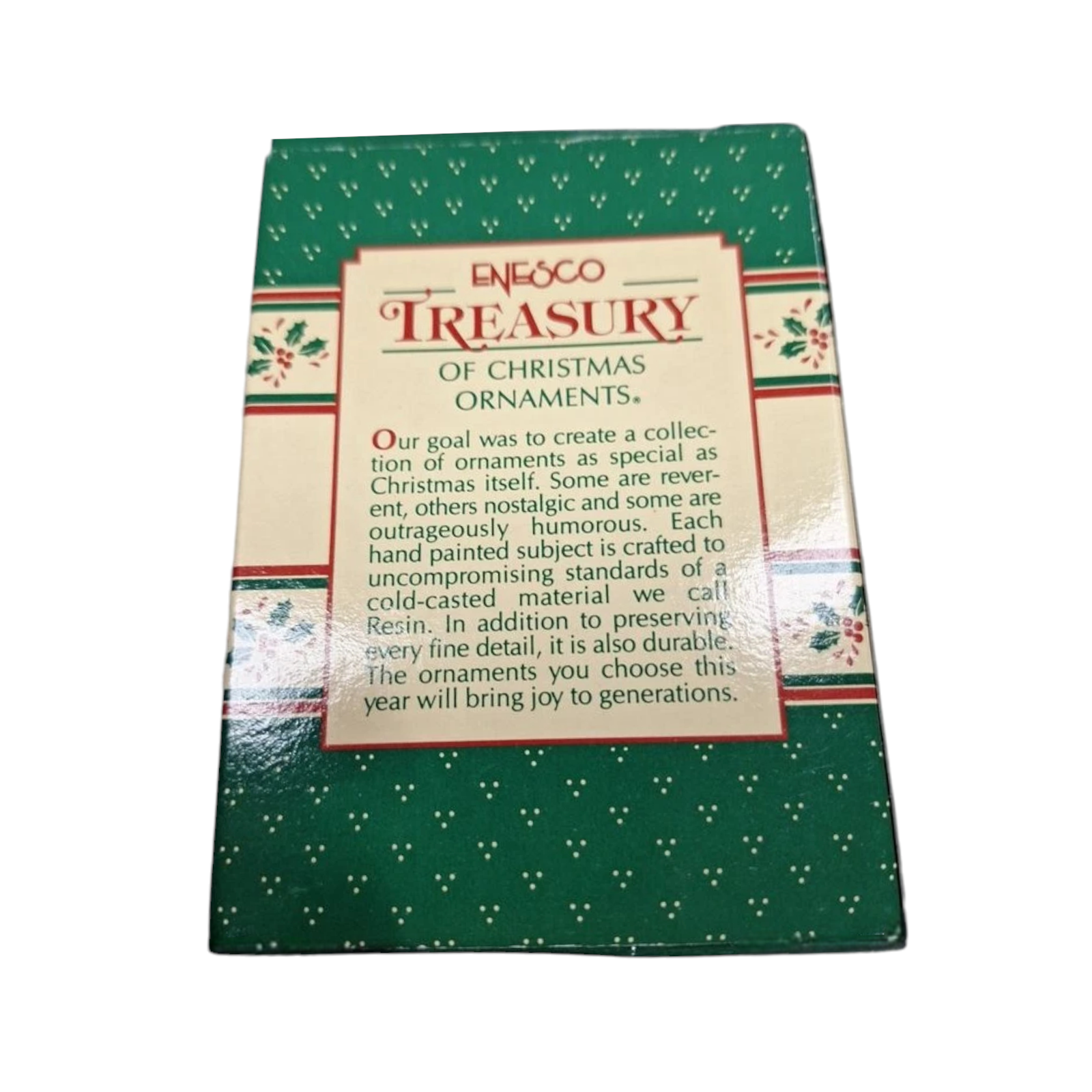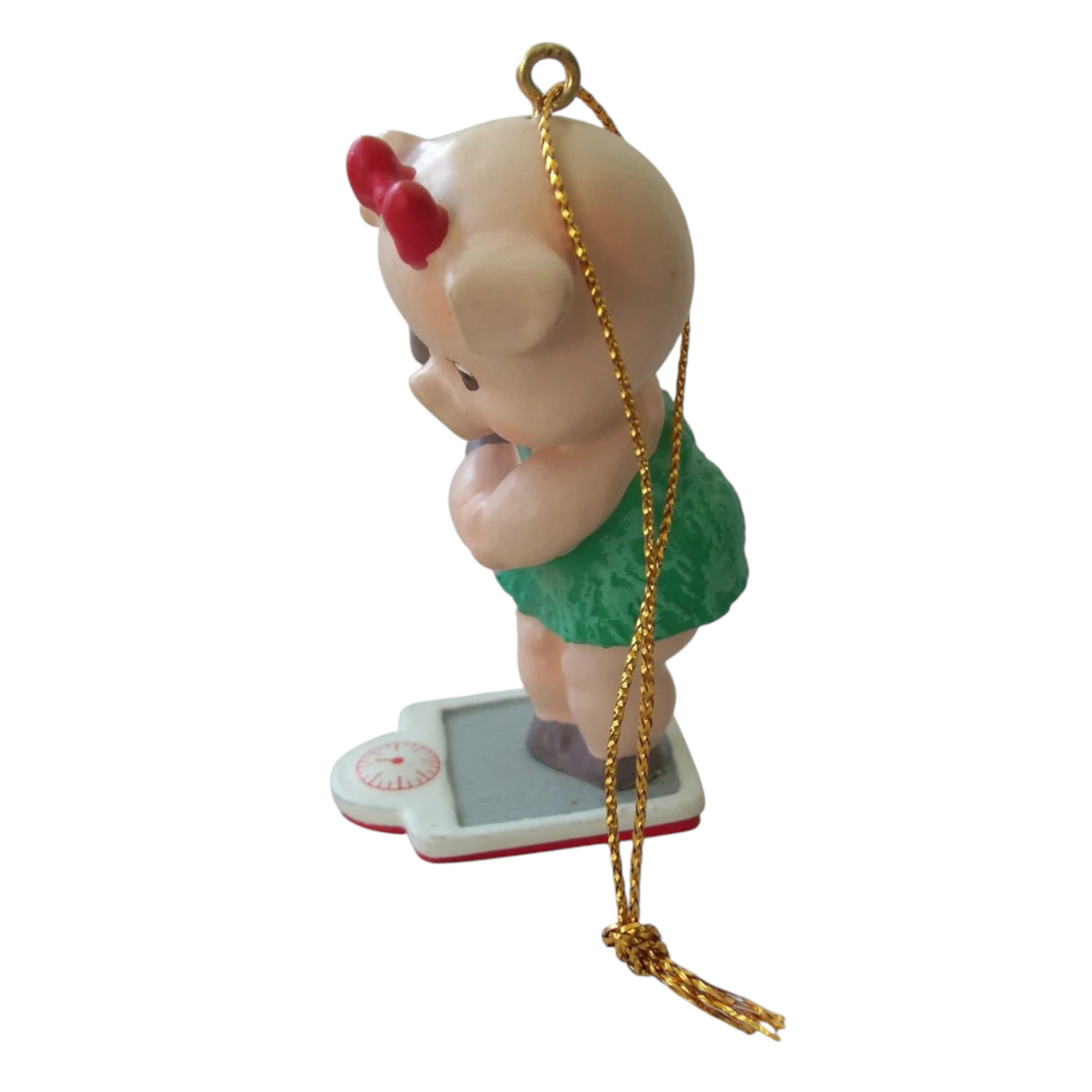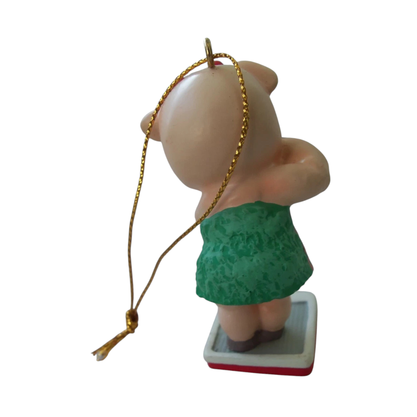 This whimsical ornament features a cheerful pig standing atop a vintage scale, eagerly awaiting Santa’s arrival—capturing a playful holiday moment full of charm. The hand-painted resin/plastic finish and detailed sculpting, including holiday greenery and festive accents on the scale, reflect the craftsmanship typical of Enesco’s collectible lines. As the first issue in the “Pig Tales” series, it holds special appeal for collectors seeking series openers and novelty animal-themed ornaments. With its compact size and humorous design, it’s a fun addition to any tree, display or holiday collection.